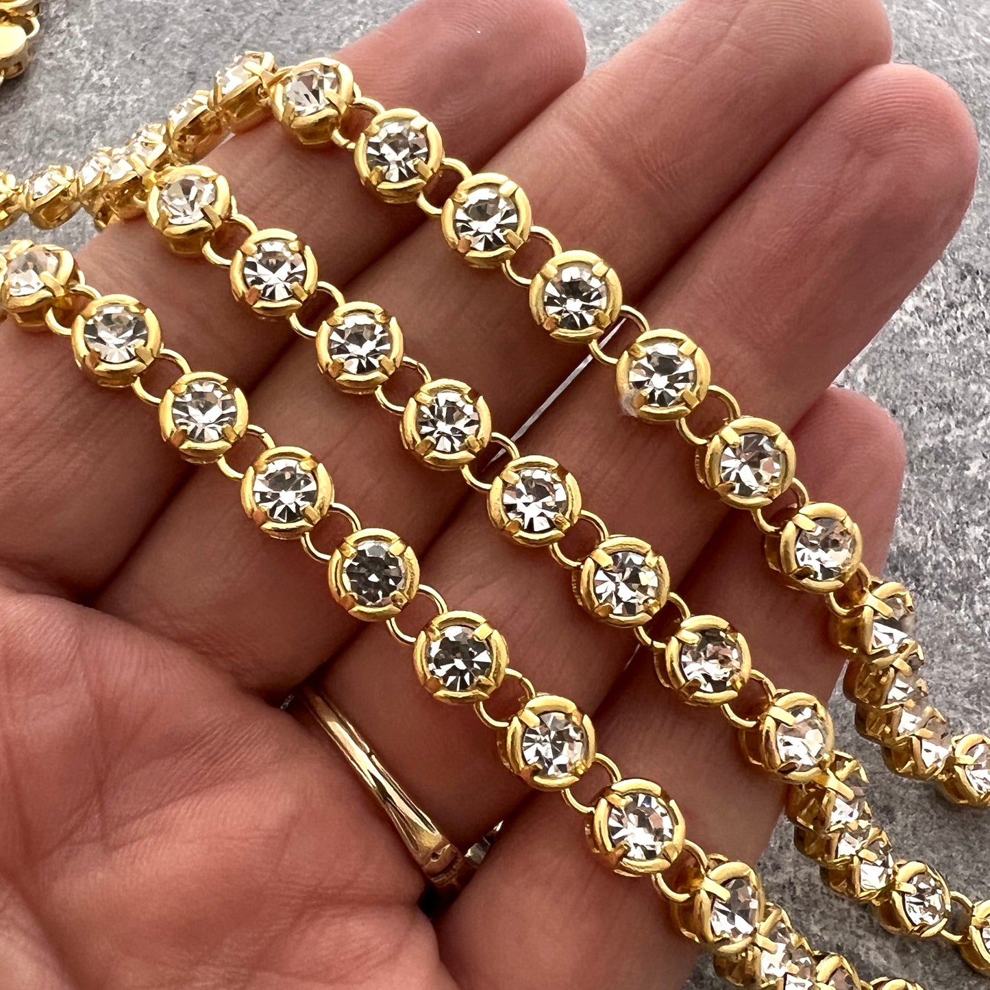 Add Gold Small Crystal, Chunky Rhinestone Chain Chain by the Foot, Jewelry Supplies, GL-2053 to the cart
