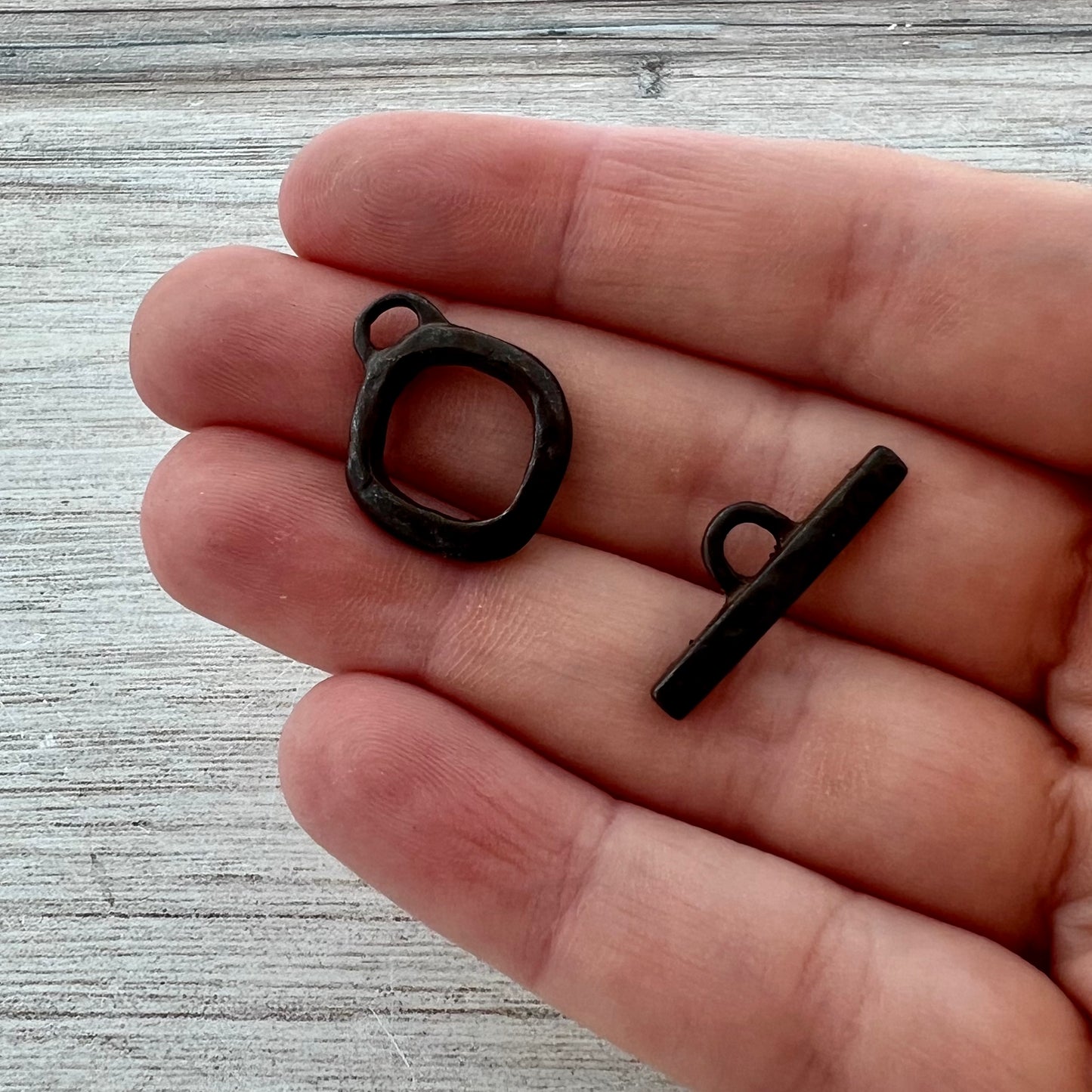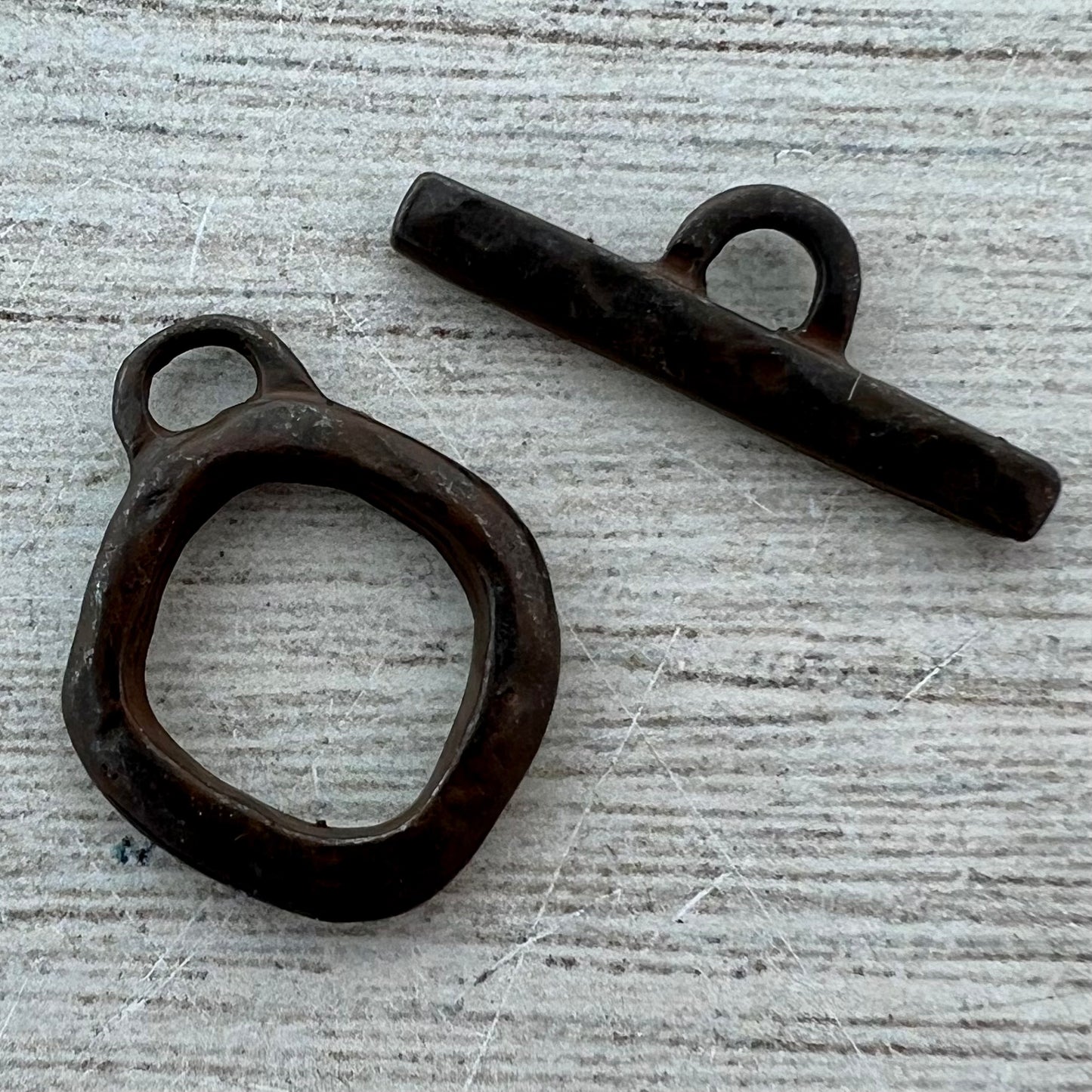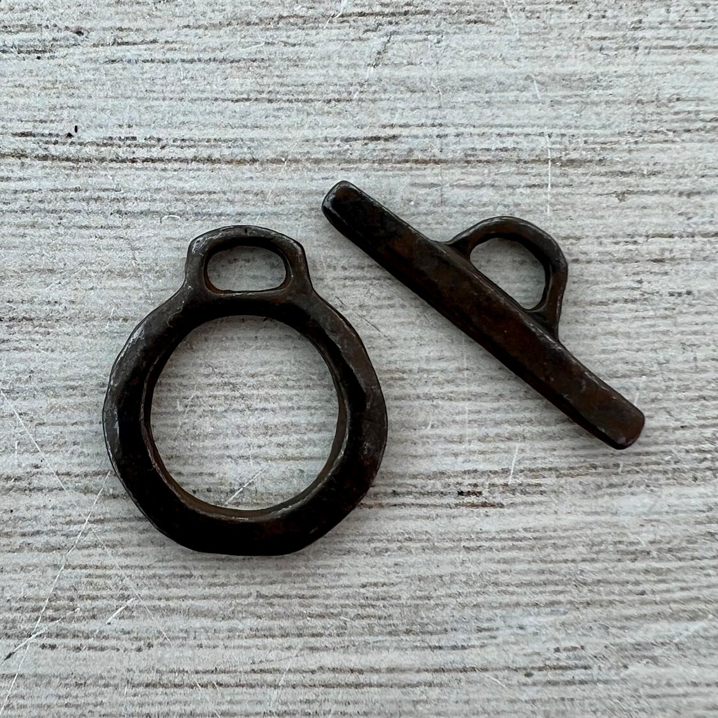 Medium Hammered Organic Toggle Clasp, Rustic Brown Closure, Artisan Necklace Bracelet Findings, BR-6273