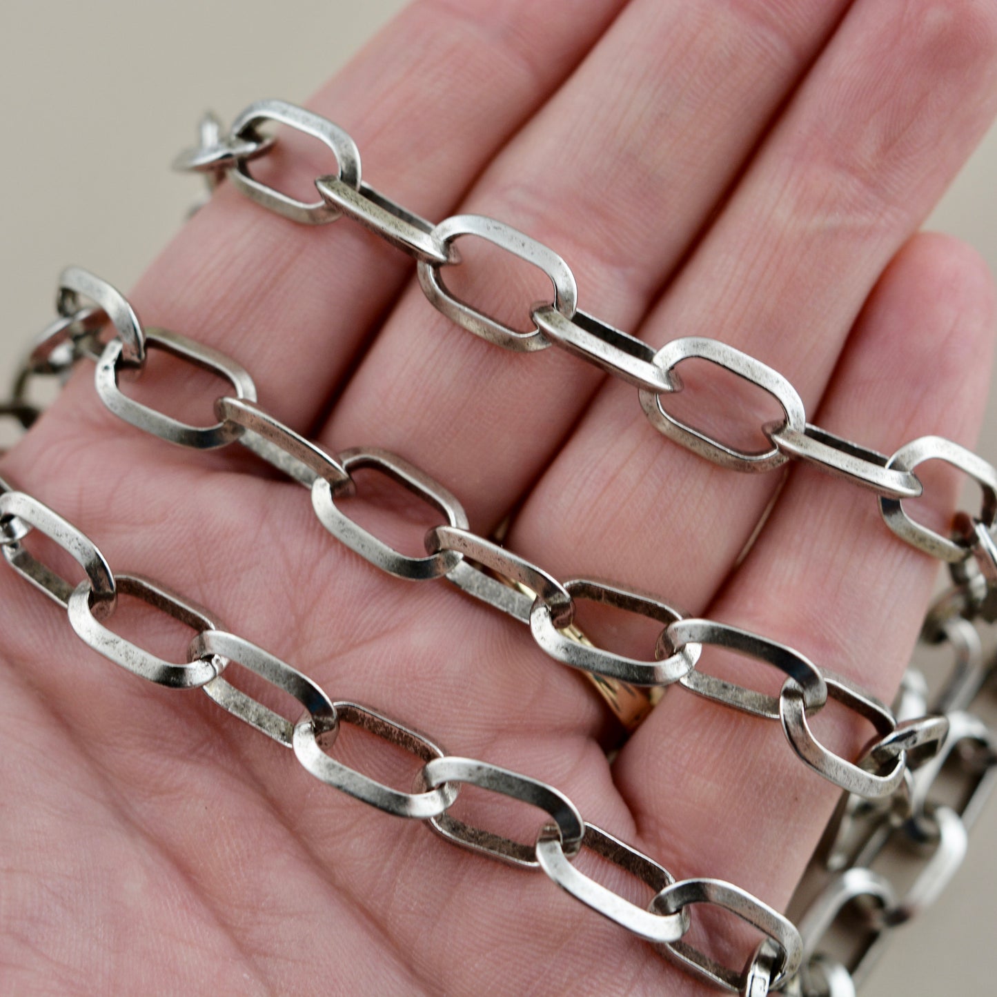 Textured Large Silver Paperclip Chain by the Foot, Hammered Rectangle Chain, Jewelry Supplies, PW-2075
