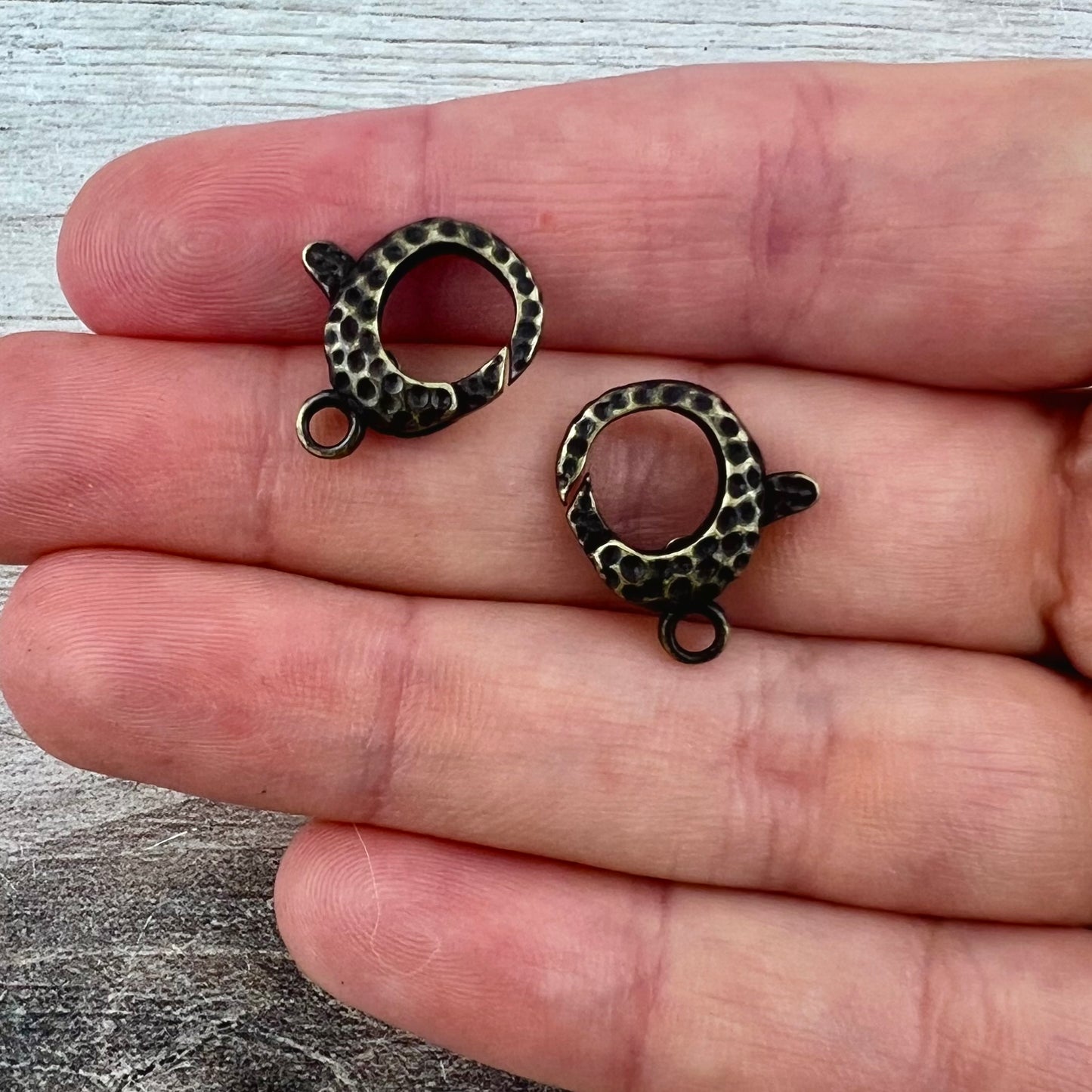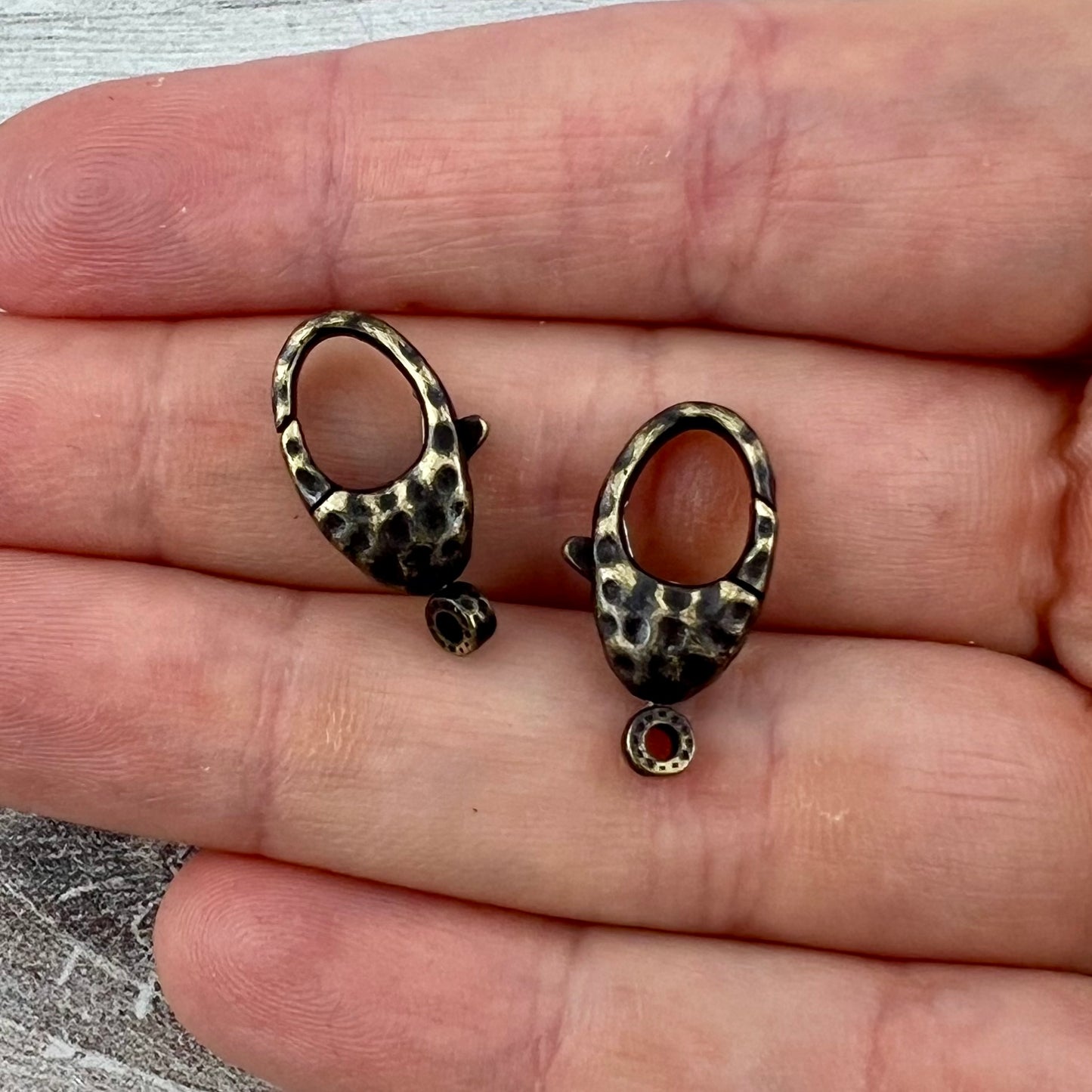Add 2 Hammered Lobster Claw, Antiqued Brass Lobster Claw, Artisan Necklace Jewelry Components, BR-6278 to the cart