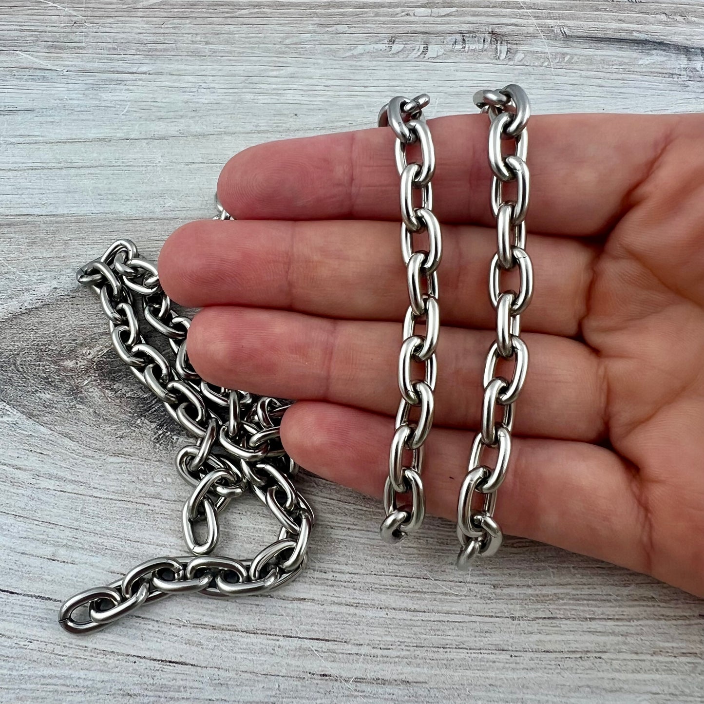 Chunky Oval Silver Chain, Thick Link Chain by the Foot, Jewelry Making Supplies, PW-2065