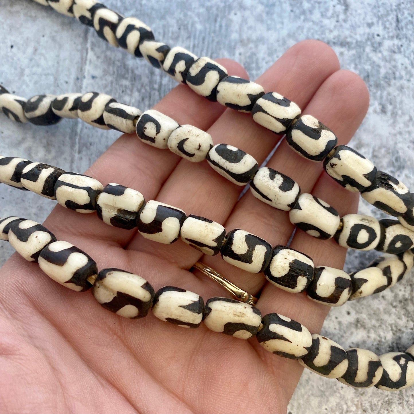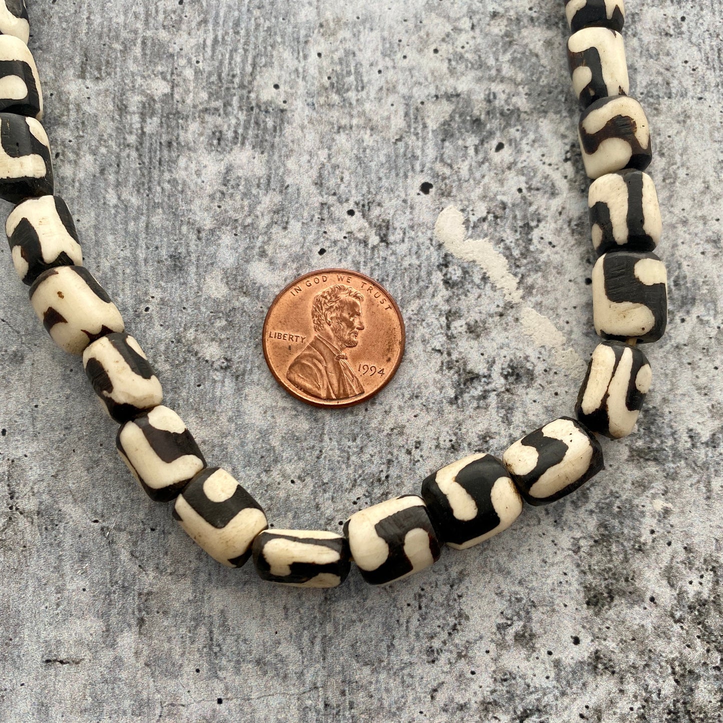 Full Strand Batik African Bone Beads, Black and White, 9x12mm, BD-0011
