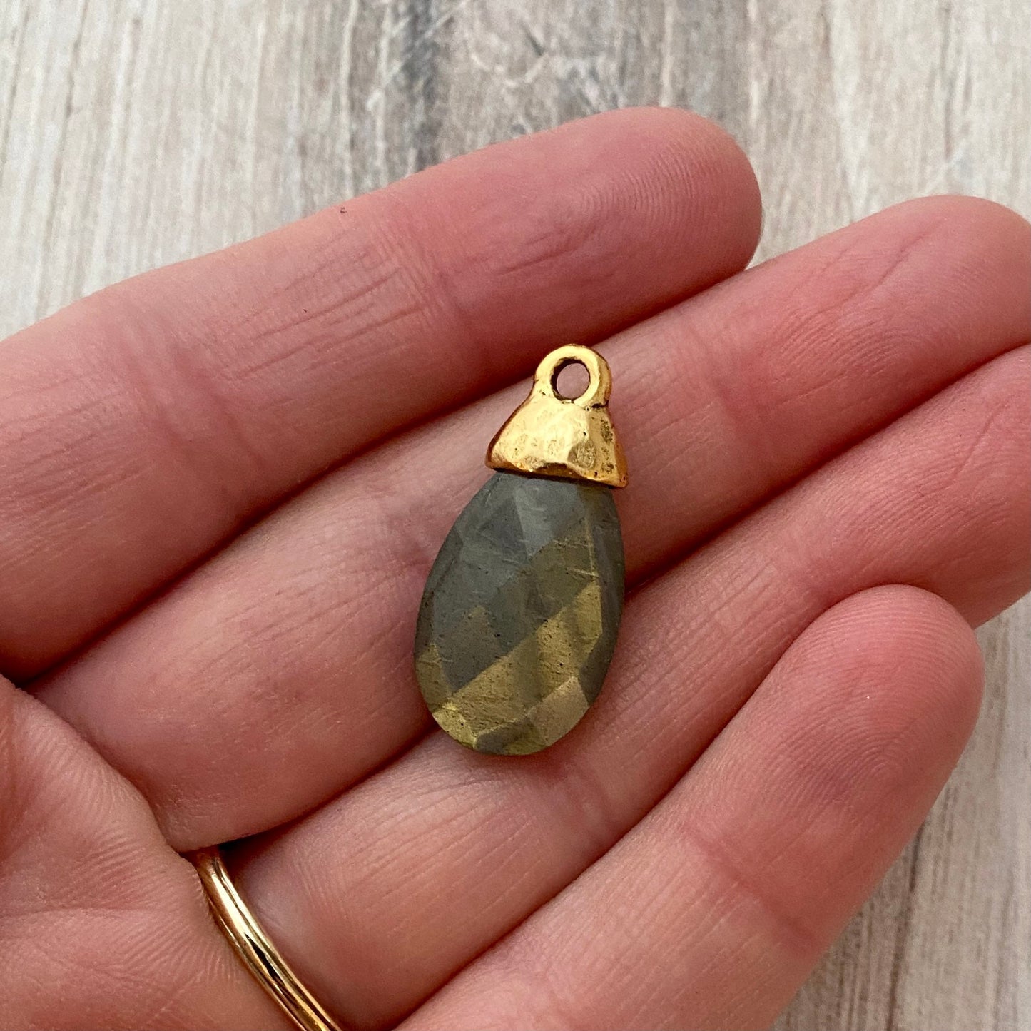 Please note these gemstones may have some naturally occurring veins/inclusions in them. Stones cut in India. Bead cap made and assembled in USA. Lead and cadmium free.