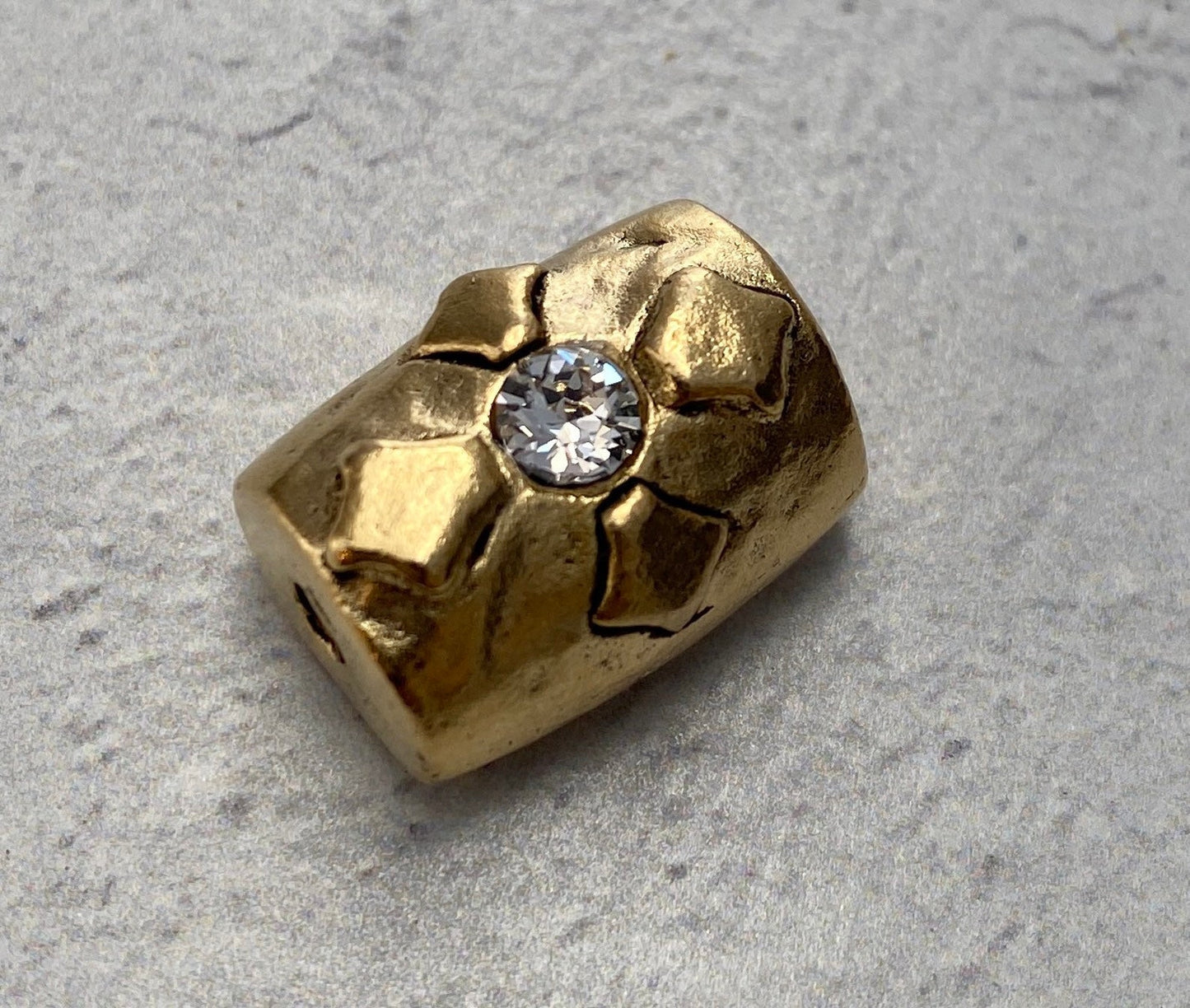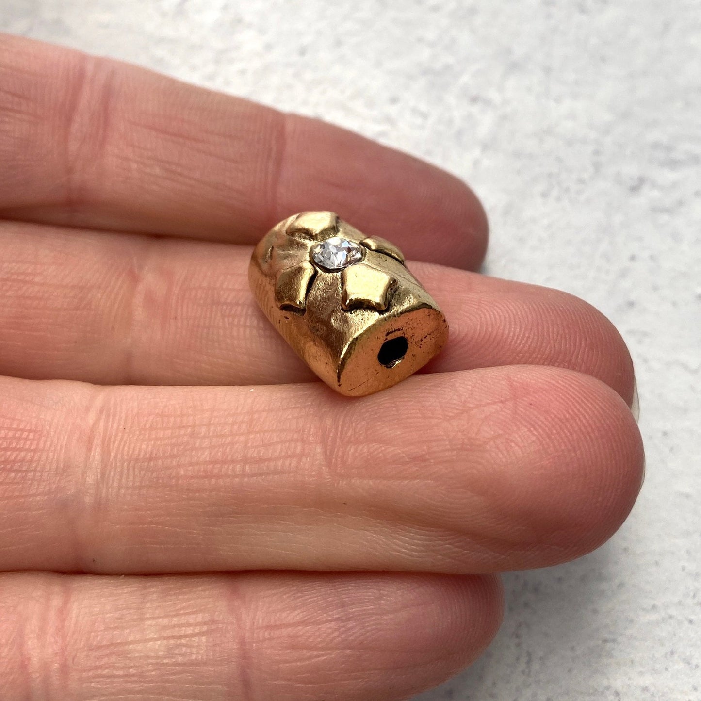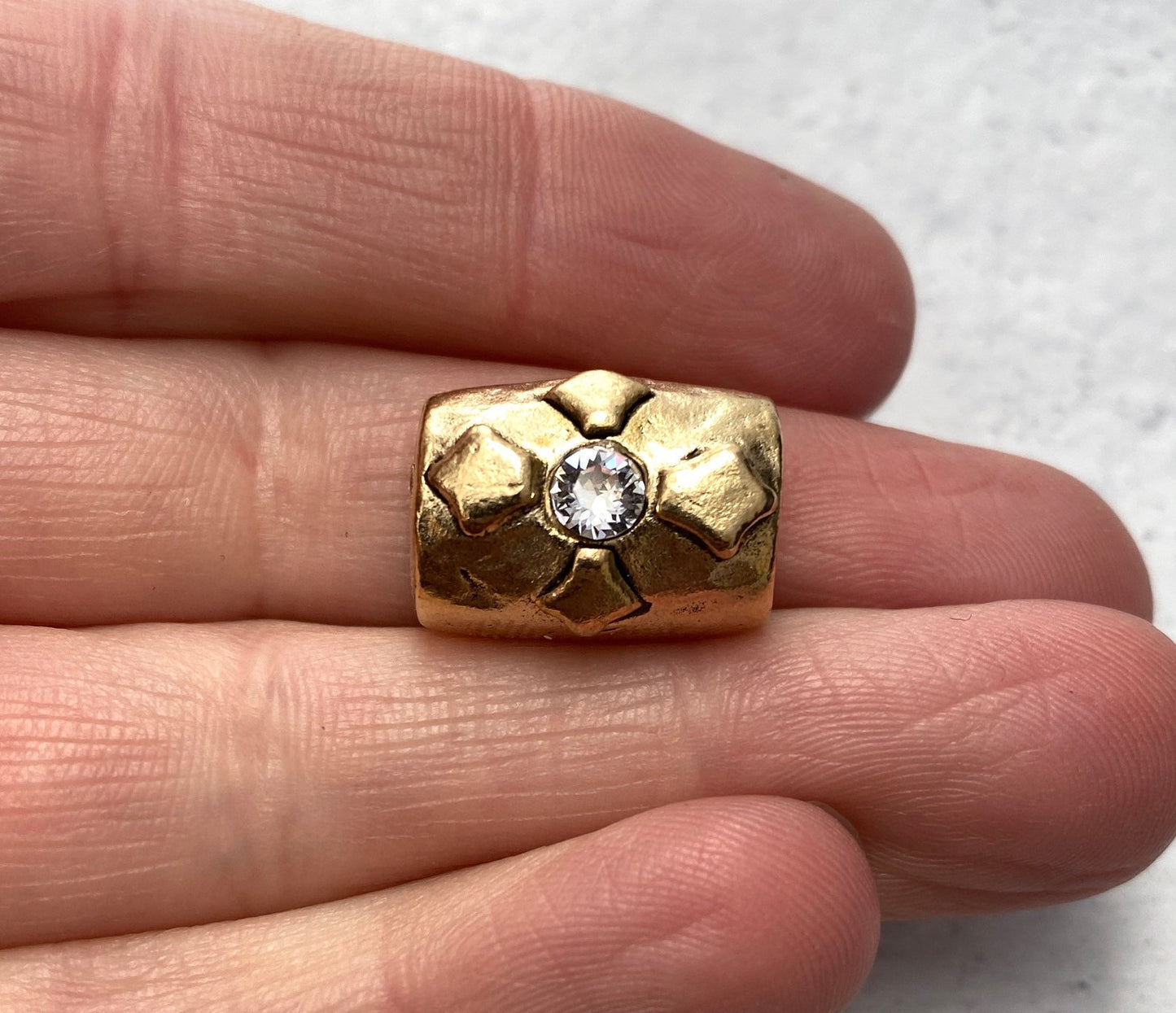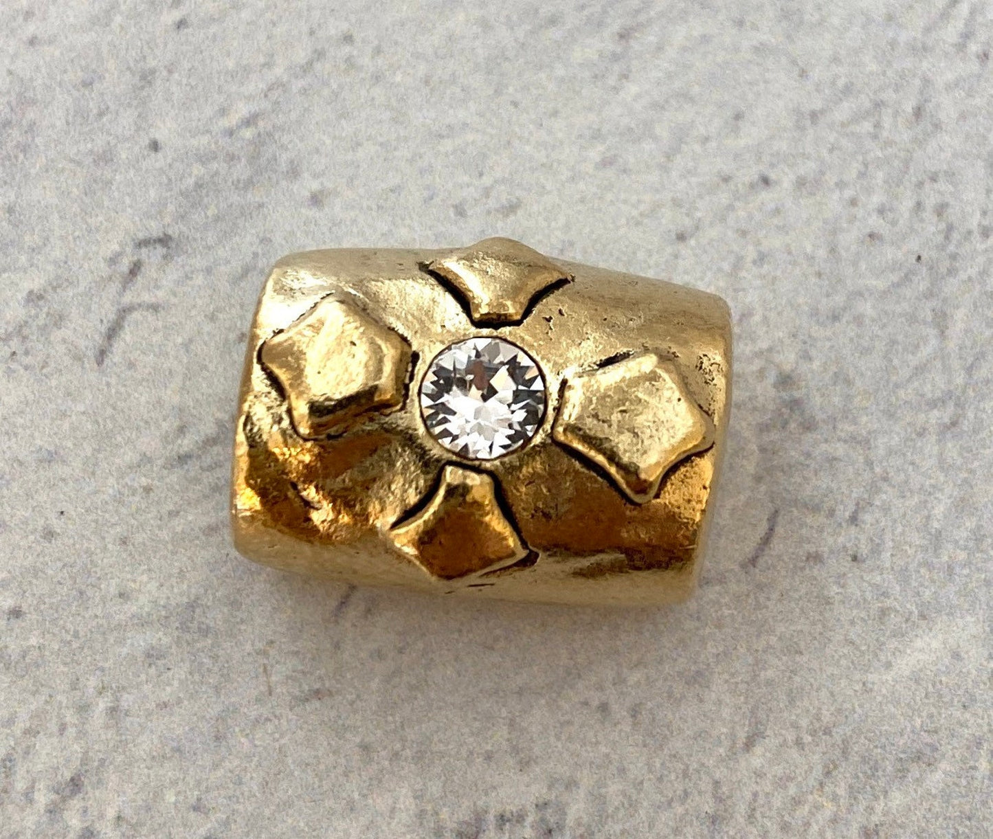 Large Artisan Barrel Bead with Swarovski Crystal Rhinsetone, Antiqued Gold Cross Flower Slider Jewelry Components, Supplies, GL-6116