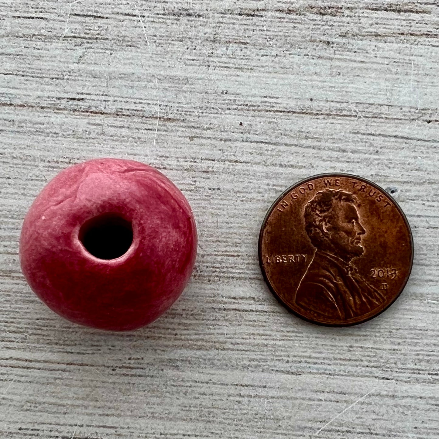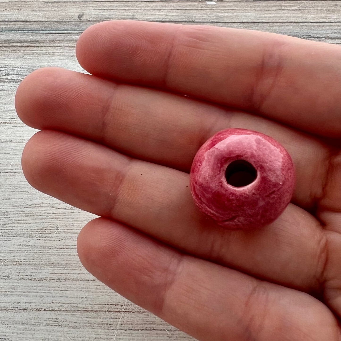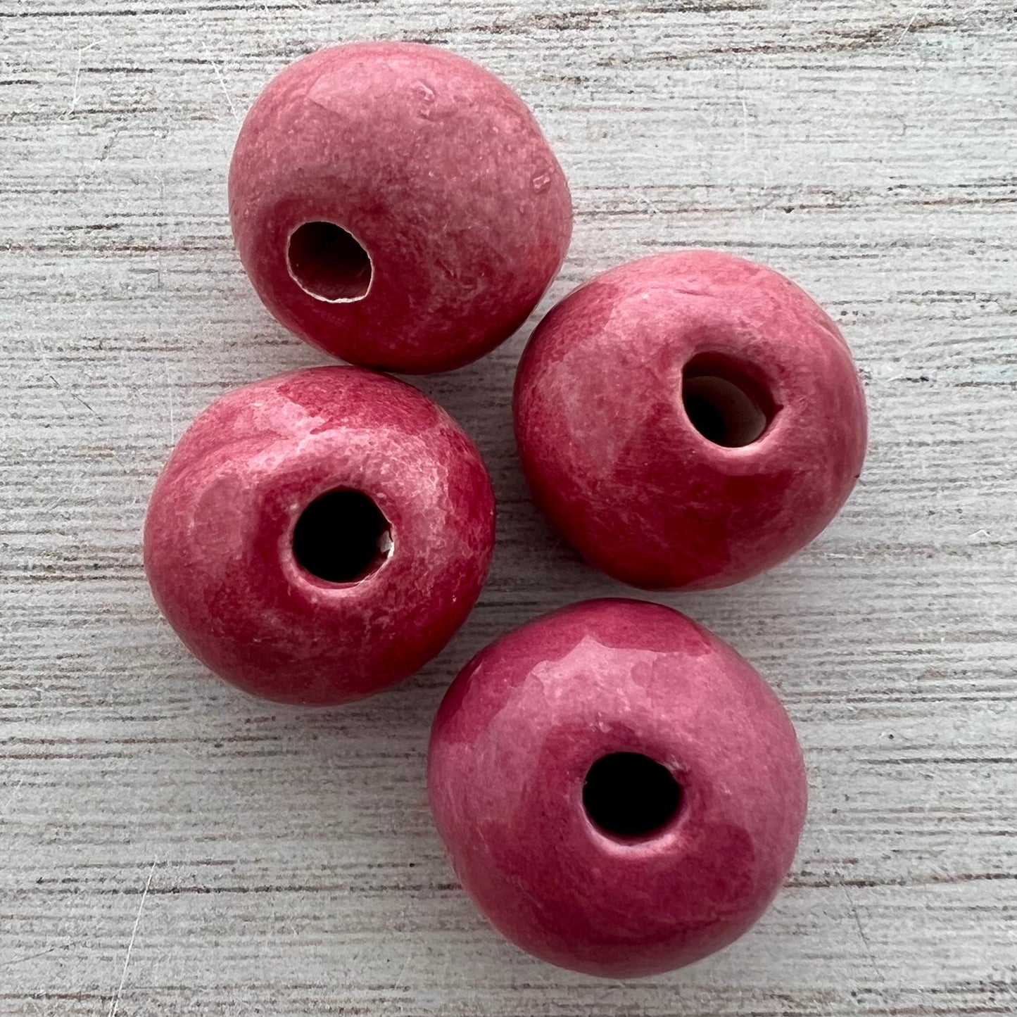 4 Large Pink Ceramic Glazed Beads, Jewelry Finding Making Supplies, BD-0039