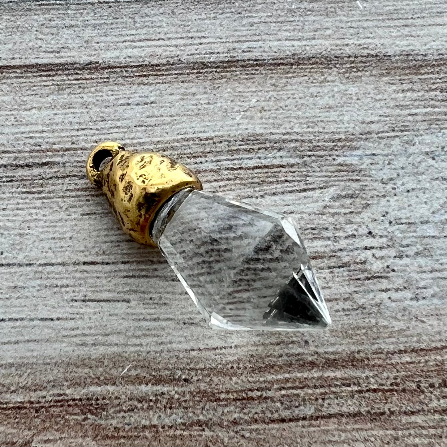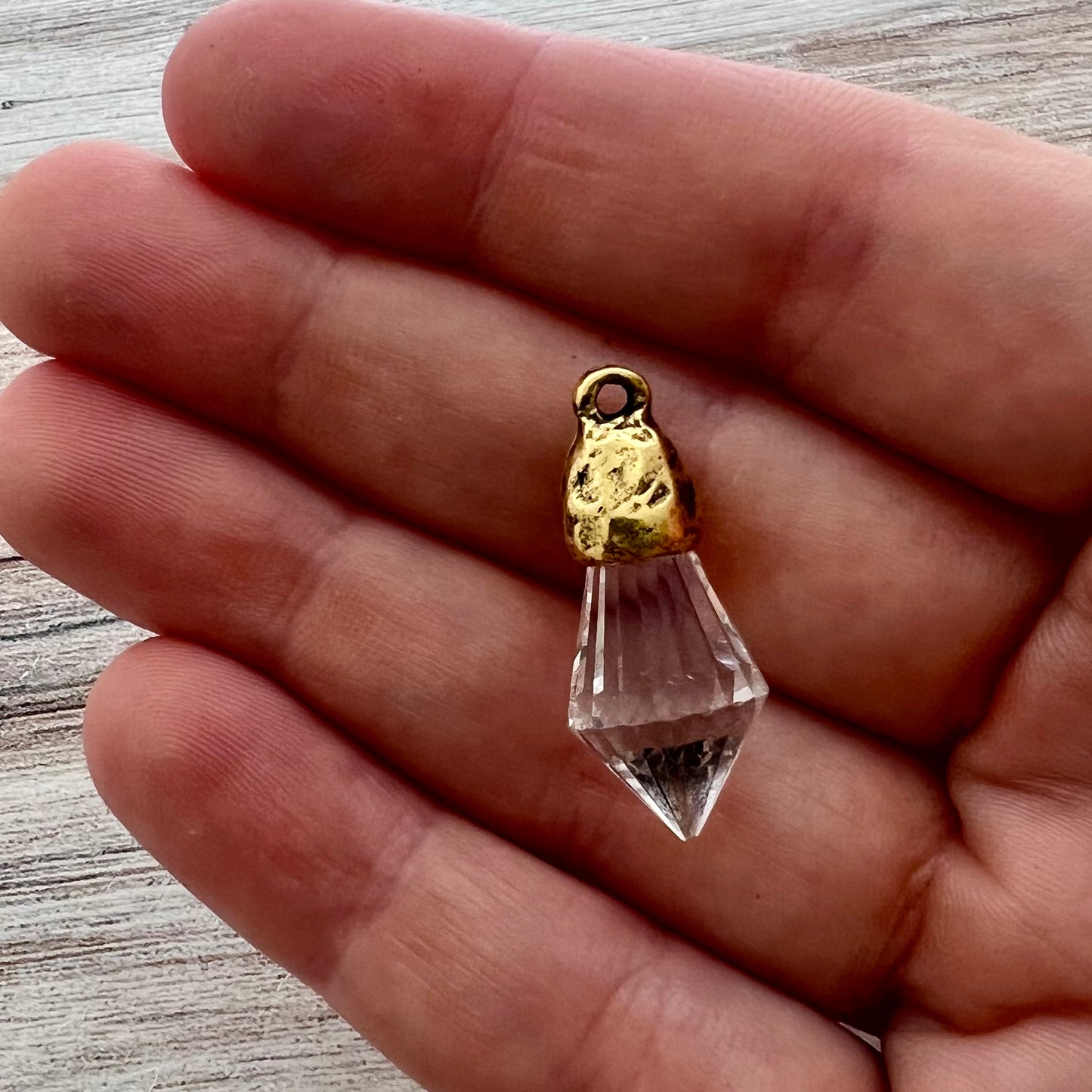 This chandelier crystal prism drop pendant makes a beautiful addition to your designs. The crystal for this listing is clear. These pieces add a sophisticated sparkle to your creations. Do remember to be careful with these, as it's possible for the glass to break or chip.