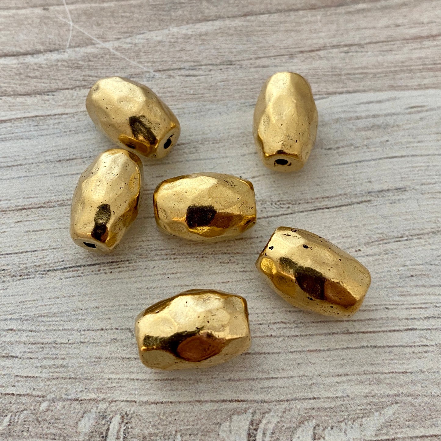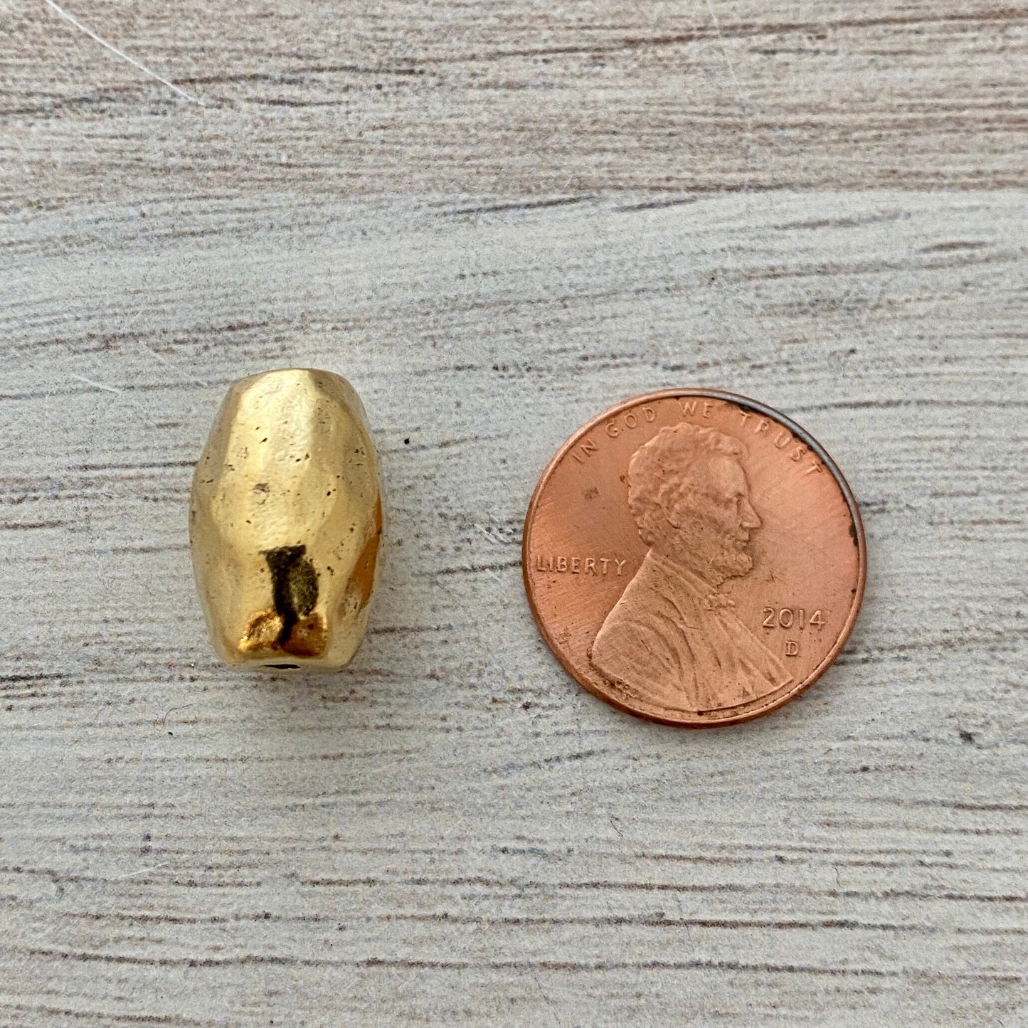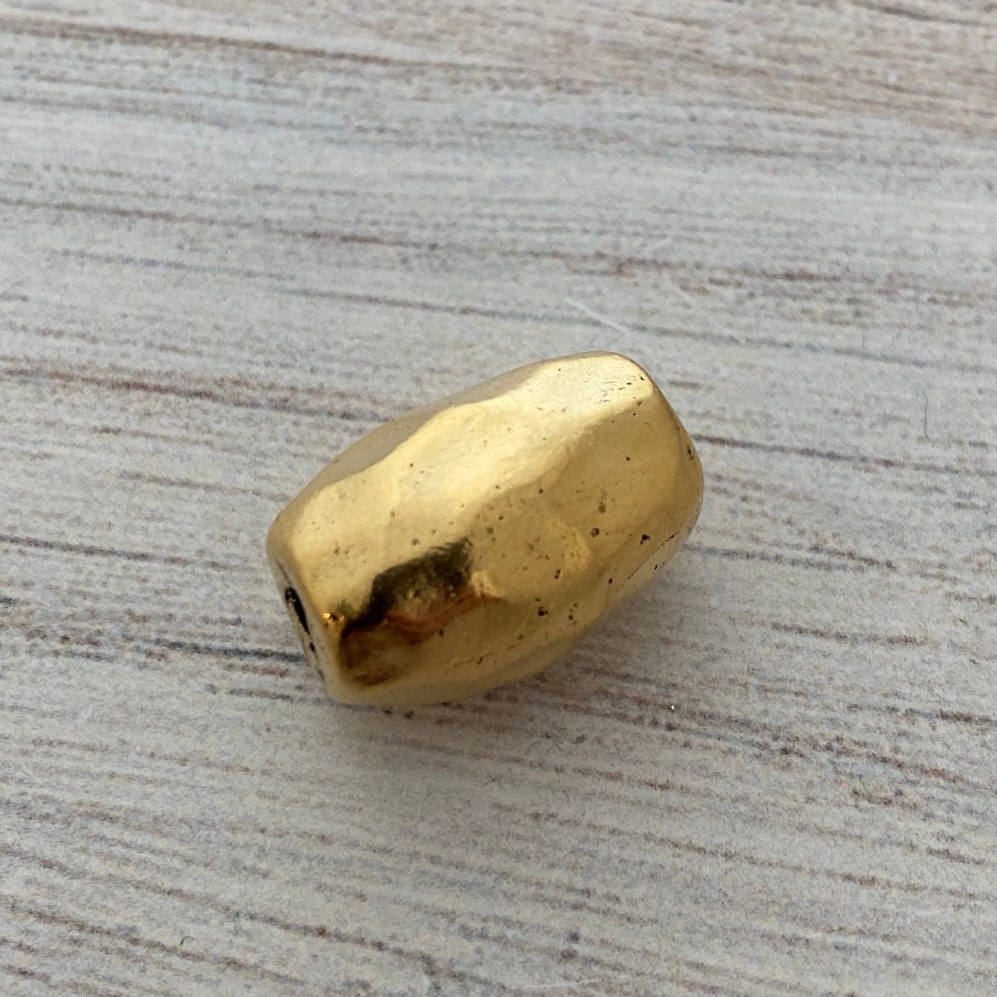This bead is solid and heavy! This barrel shaped bead has a beautiful texture that gives it a gorgeous sheen. Quality components make your jewelry more interesting and make it feel much more expensive. These look great on beaded bracelets.