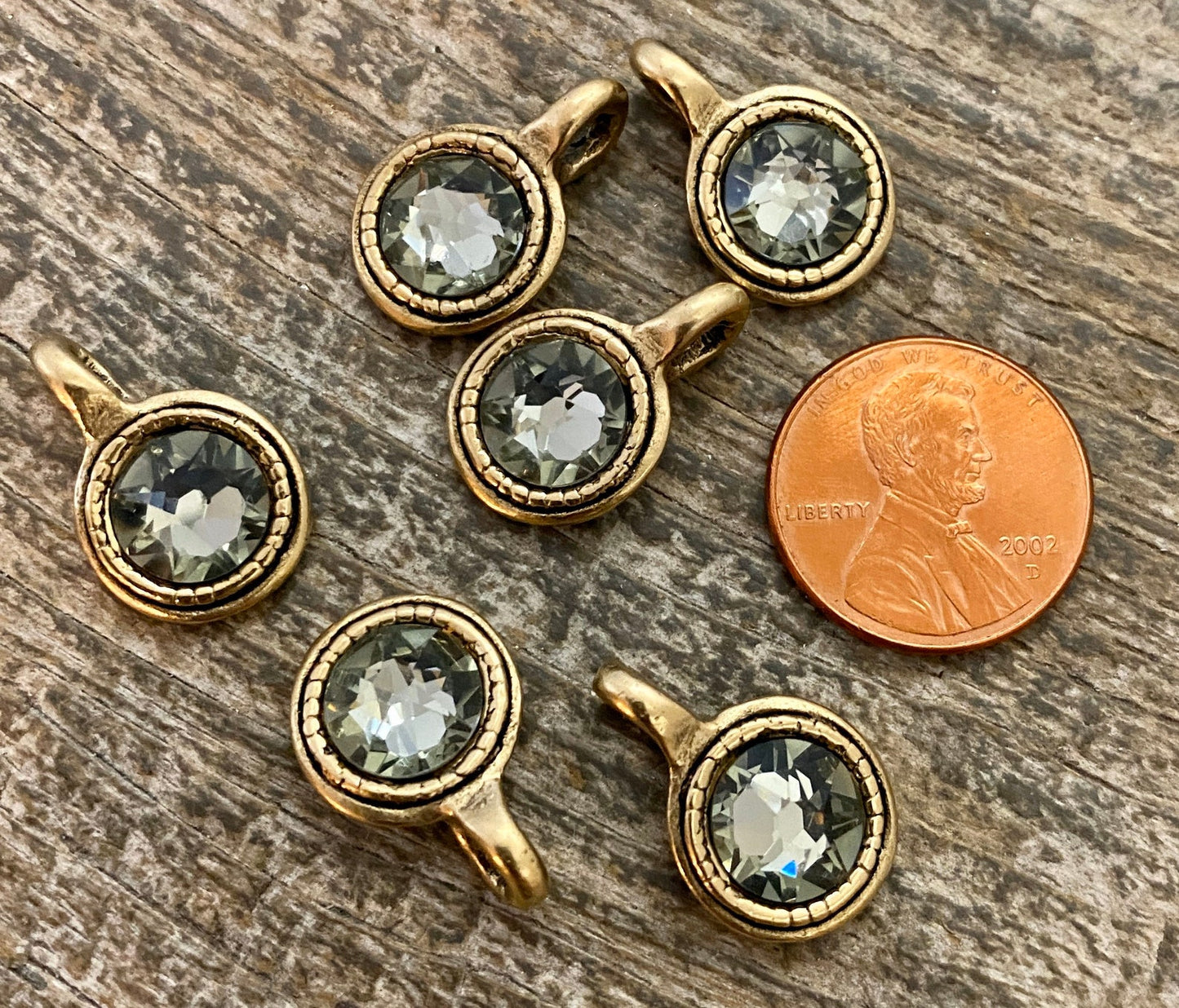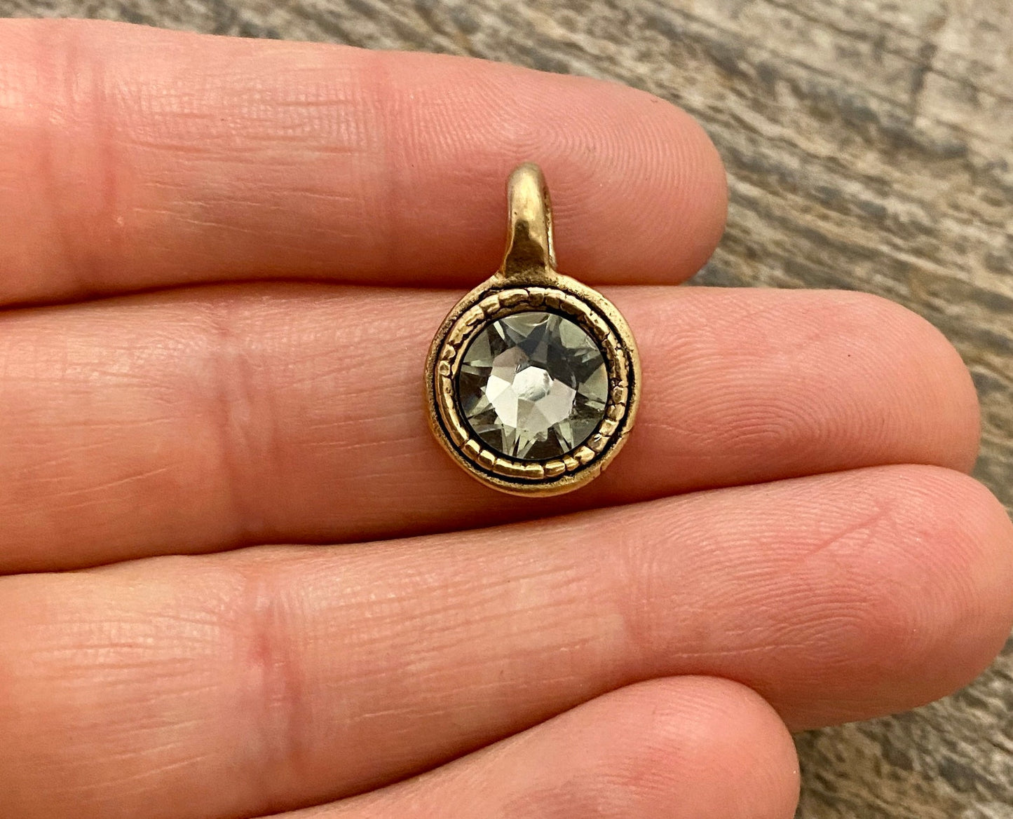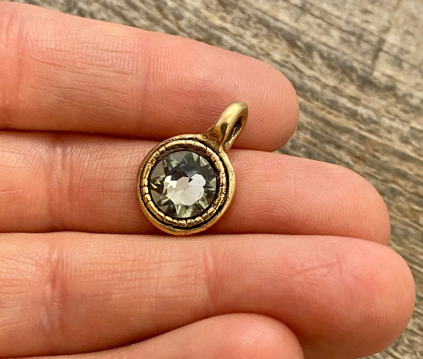 Large Swarovski Crystal Black Diamond Charm, Antiqued Gold Pendant, Jewelry Making Artisan Findings, GL-S009