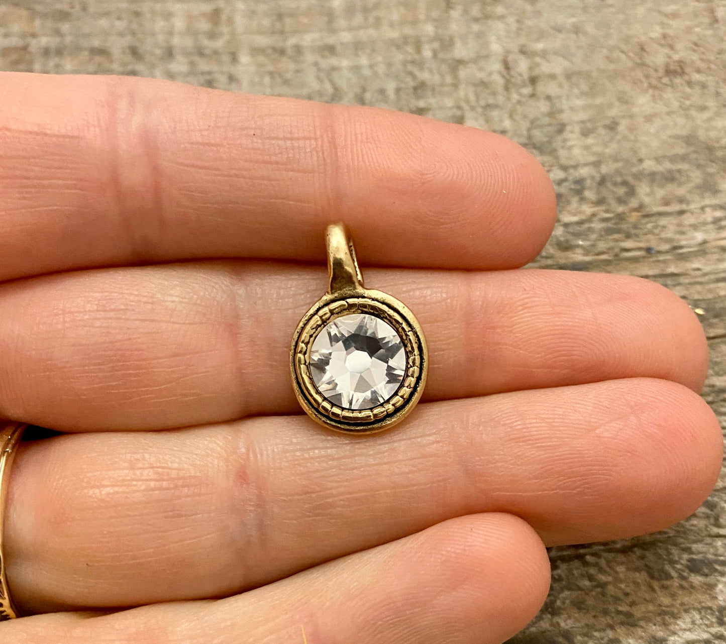 Add a noticeable pop to your creations! This is nice and large and feels great to the touch. It can be used as a charm or pendant. Use by itself or add to other charms. The Swarovski crystal is a beautiful touch of shine.