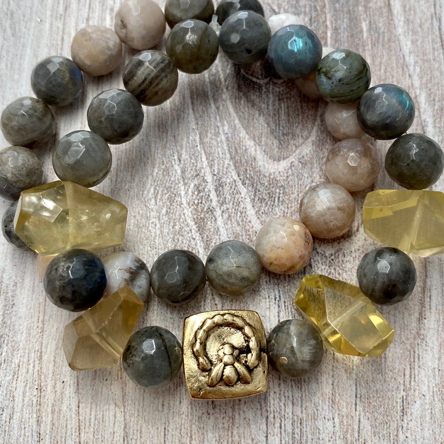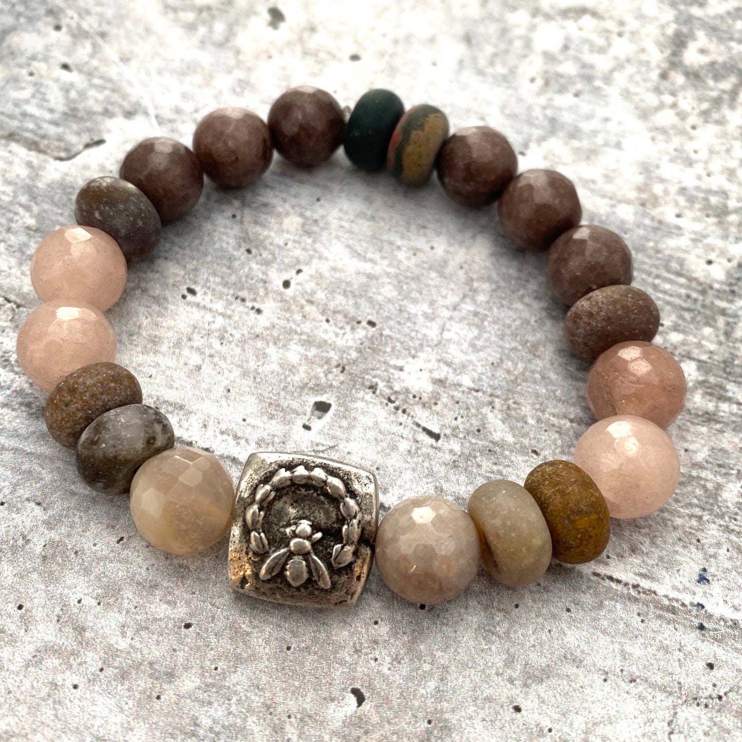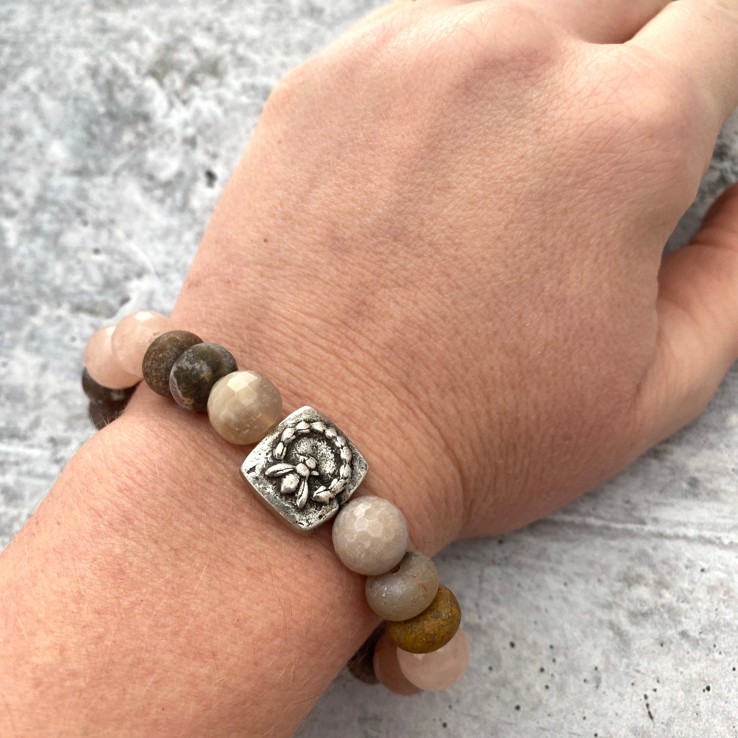 I designed this artisan bee slider bead to have a handmade feel, and to make a big impression on your bracelets. It's nice and weighty, and adds quality value to your designs. The hole is almost 2mm, which allows easily for elastic or 1.5mm leather cord.