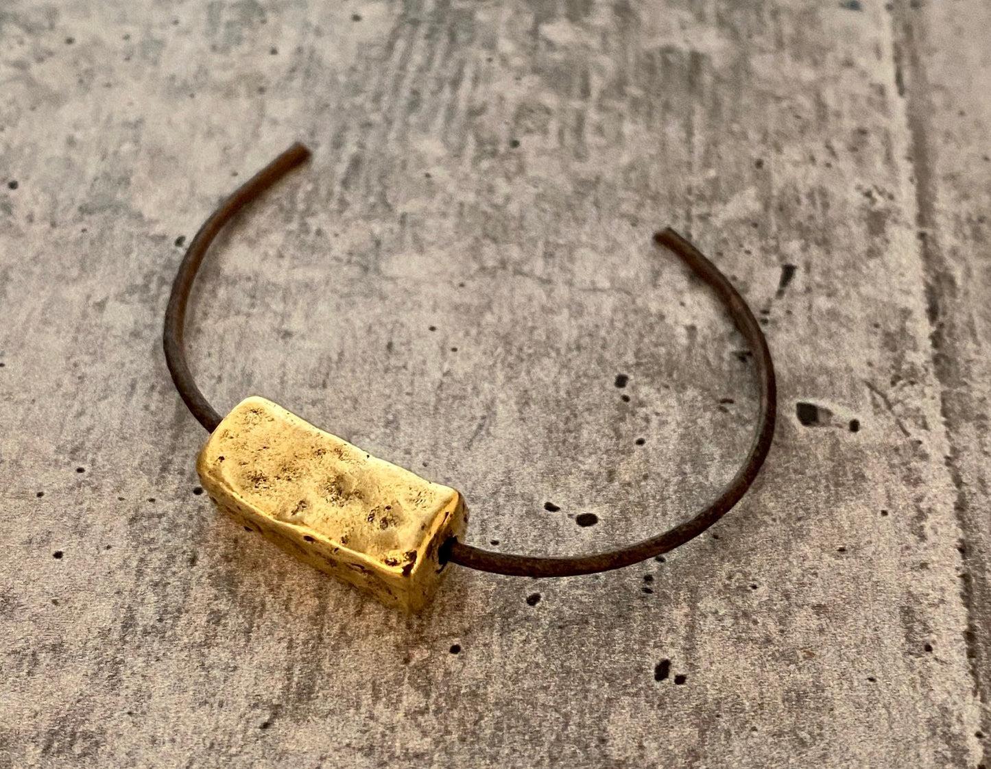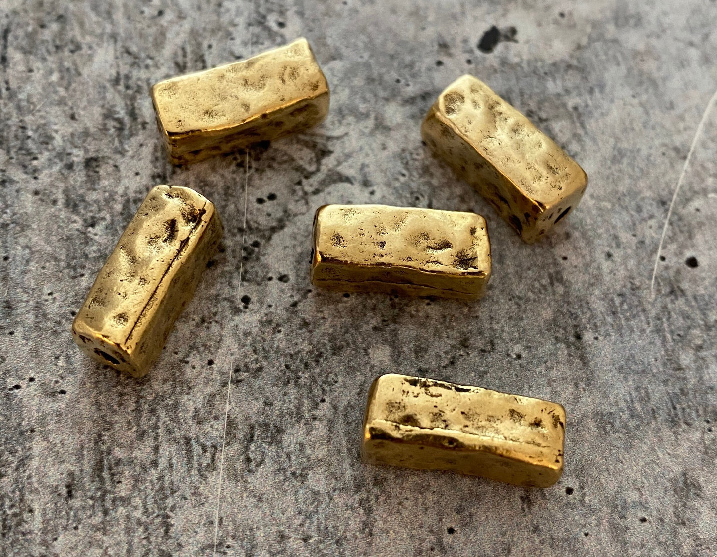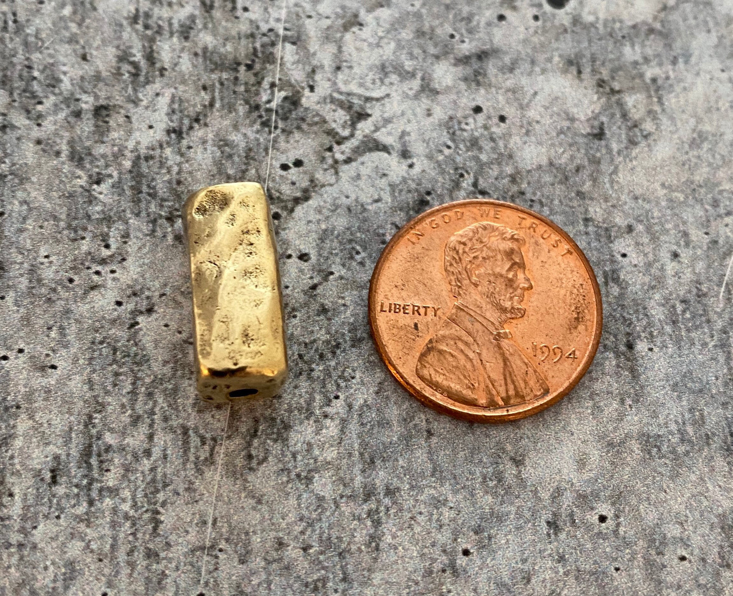 This rectangle spacer bead has a beautiful, organic feel. It's solid with the exception of the hole, which allows for elastic, wire, or leather (1mm - 1.5mm). This bead looks spectacular on a beaded bracelet.
