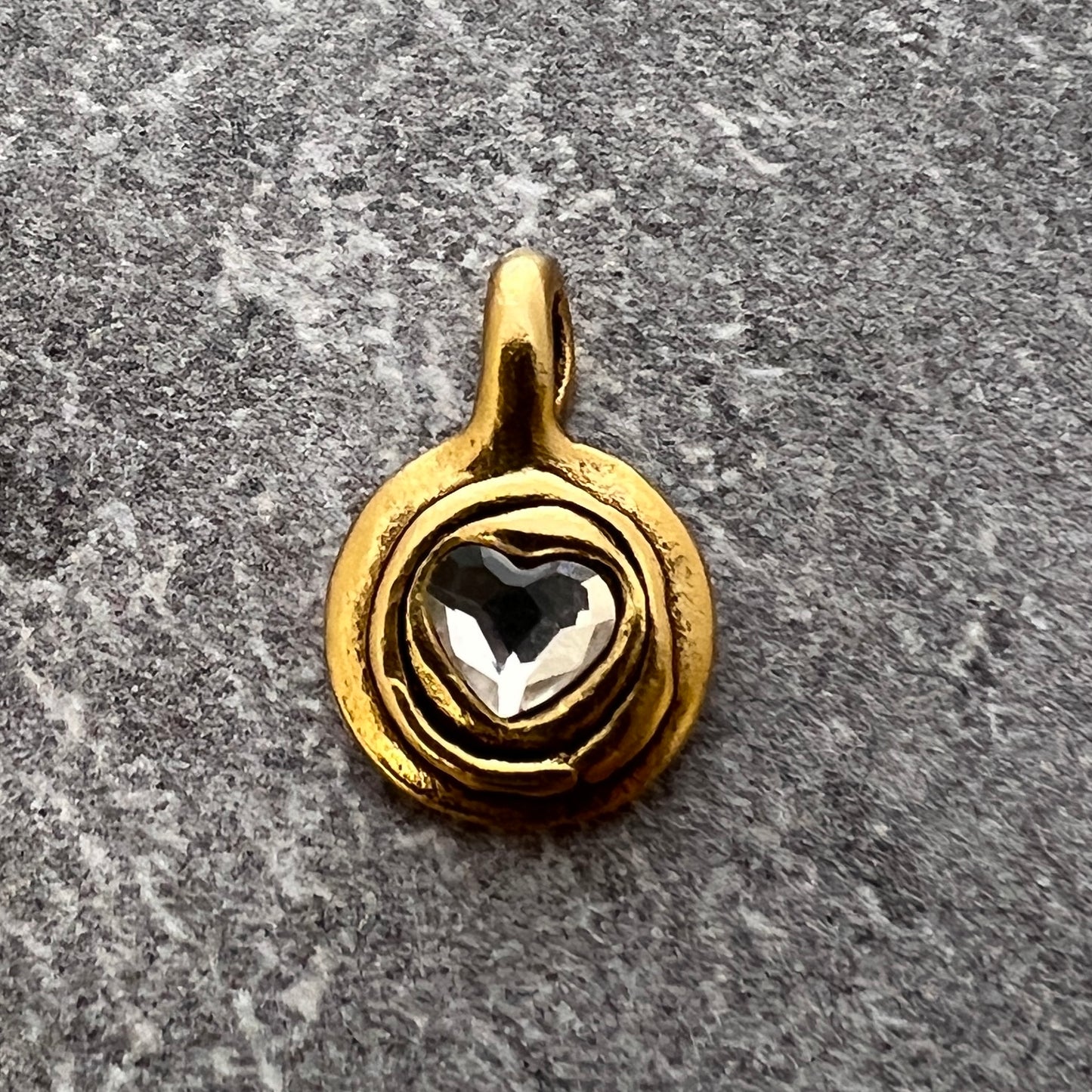 The small rhinestone / crystal heart in this setting provides a modest touch of sparkle to your creations. It slides on perfectly when making a beaded stretch bracelet; or use a jump ring to connect it to larger chain.