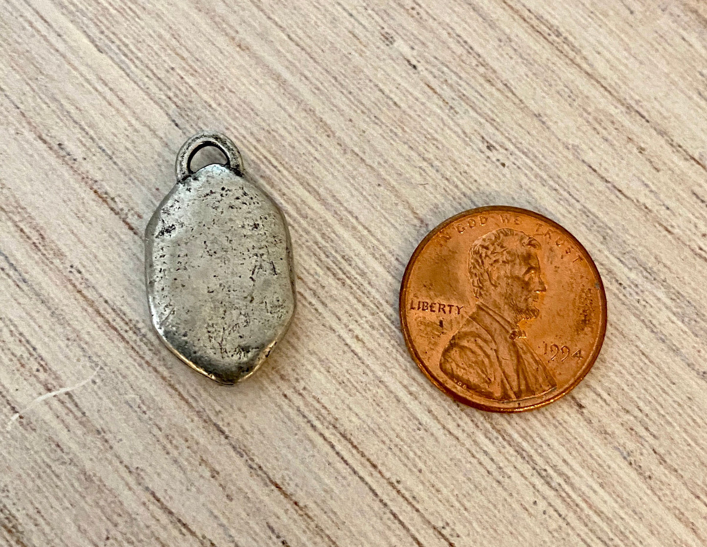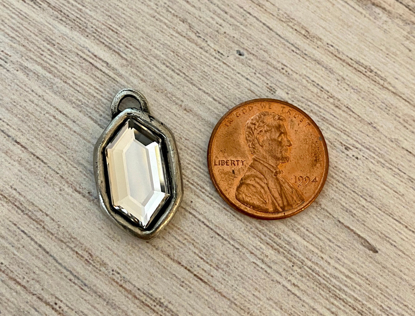 This Swarovski hexagon is a unique shape that commands the attention of those who see it! This can be used as a charm or pendant. Use by itself or add to other charms. Height: 23mm Width: 13mm Qty: 1 Metal: Pewter Finish: Antiqued Pewter