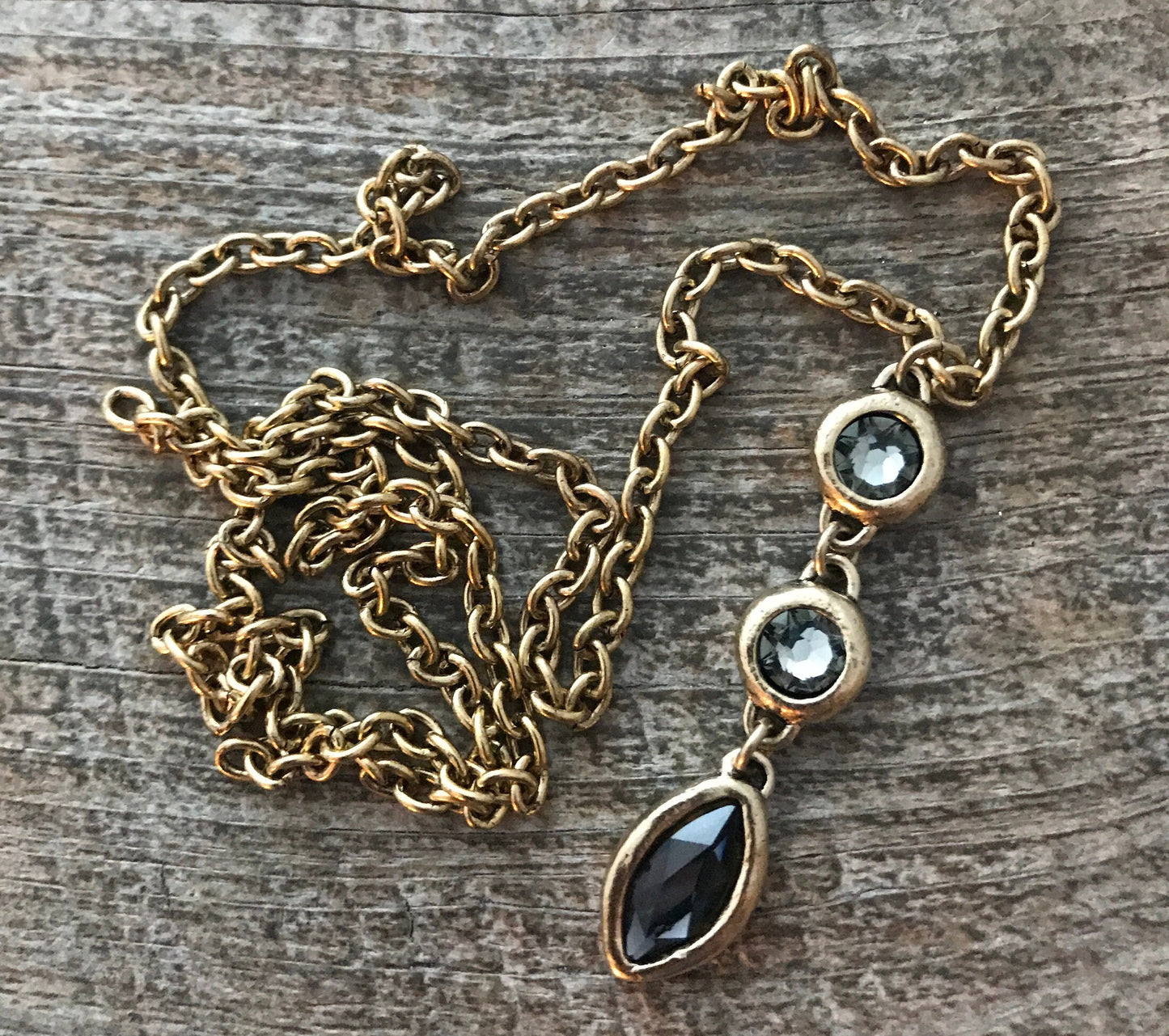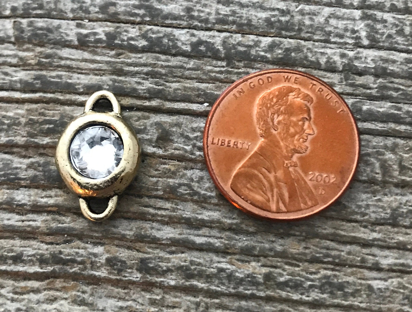 Swarovski Crystal Clear Rhinestone Connector Charm, Antiqued Gold Pendant, Jewelry Making Artisan Findings, GL-S003