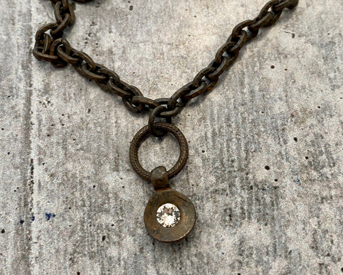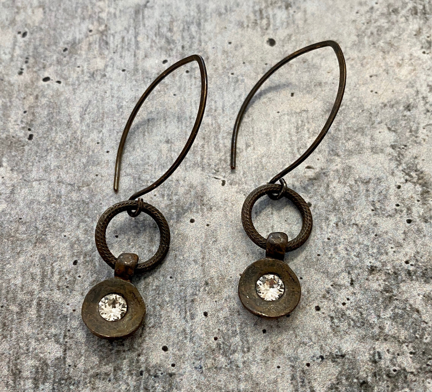 Swarovski Crystal Clear Rhinestone Modern Drop Charm, Antiqued Gold, Jewelry Making Artisan Findings, GL-S011