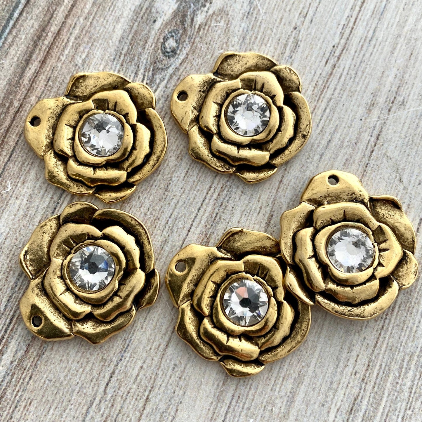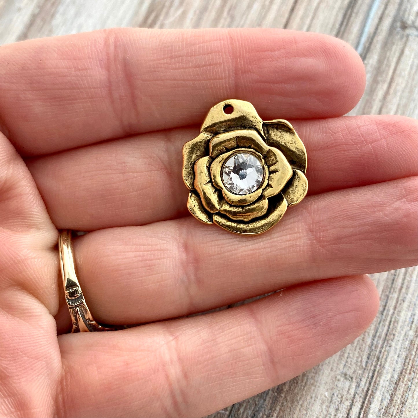 This rose / flower contains a Swarovski crystal that will make your jewelry creations stand out. It's not too heavy for earrings, and it also works great for bracelets and necklaces.