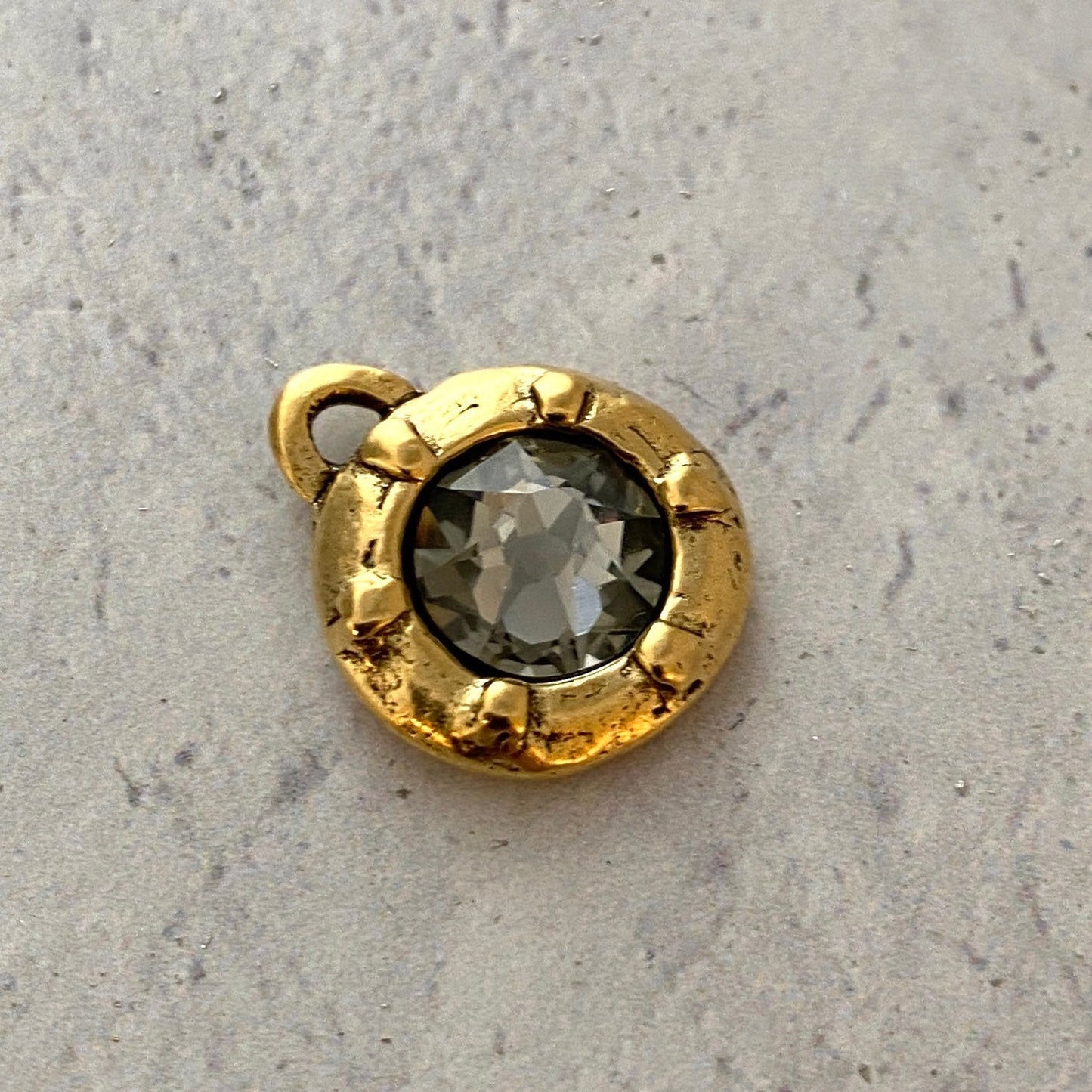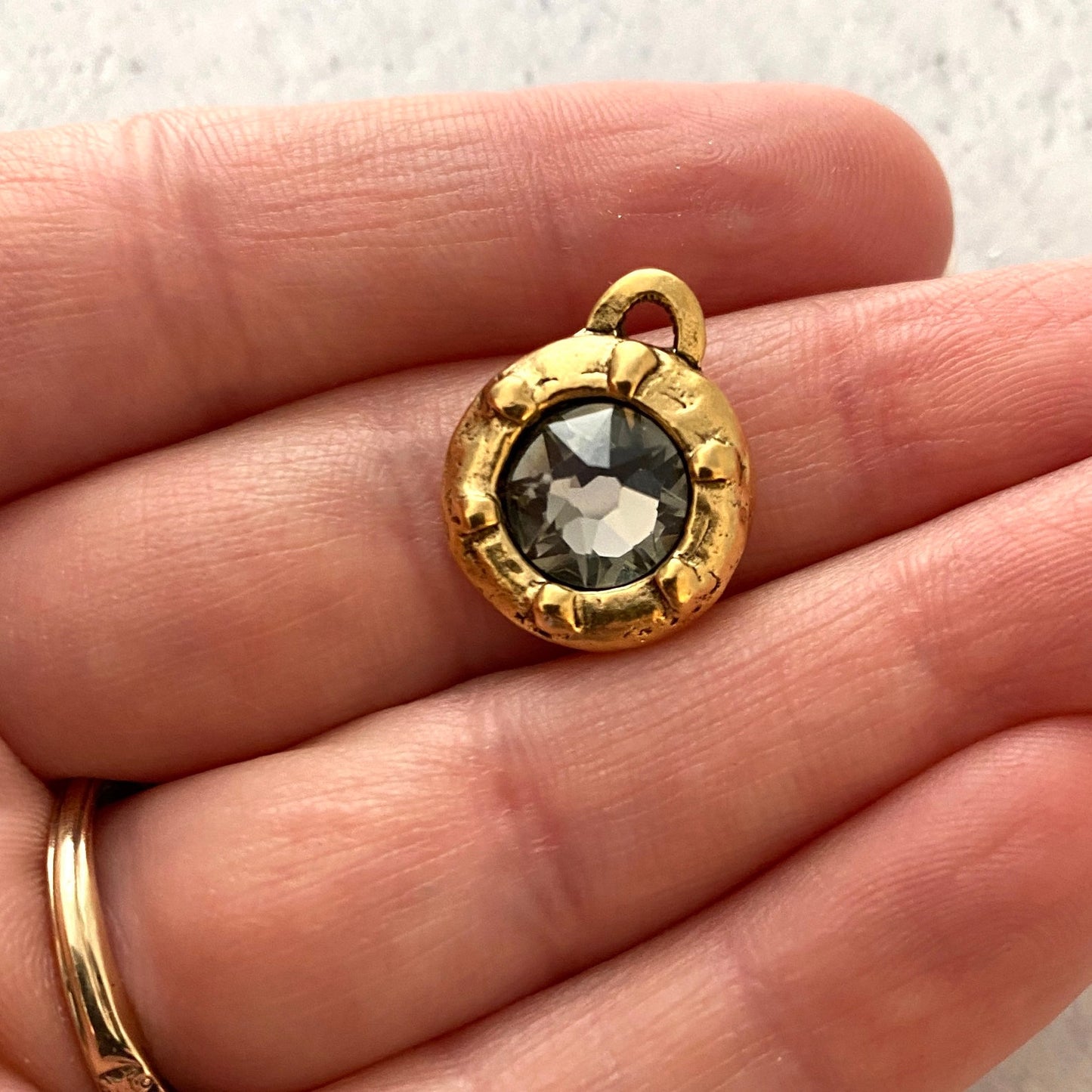 Swarovski Large Black Diamond Crystal Charm, Georgian Style Antiqued Gold Pendant, Jewelry Making Artisan Findings, GL-S017