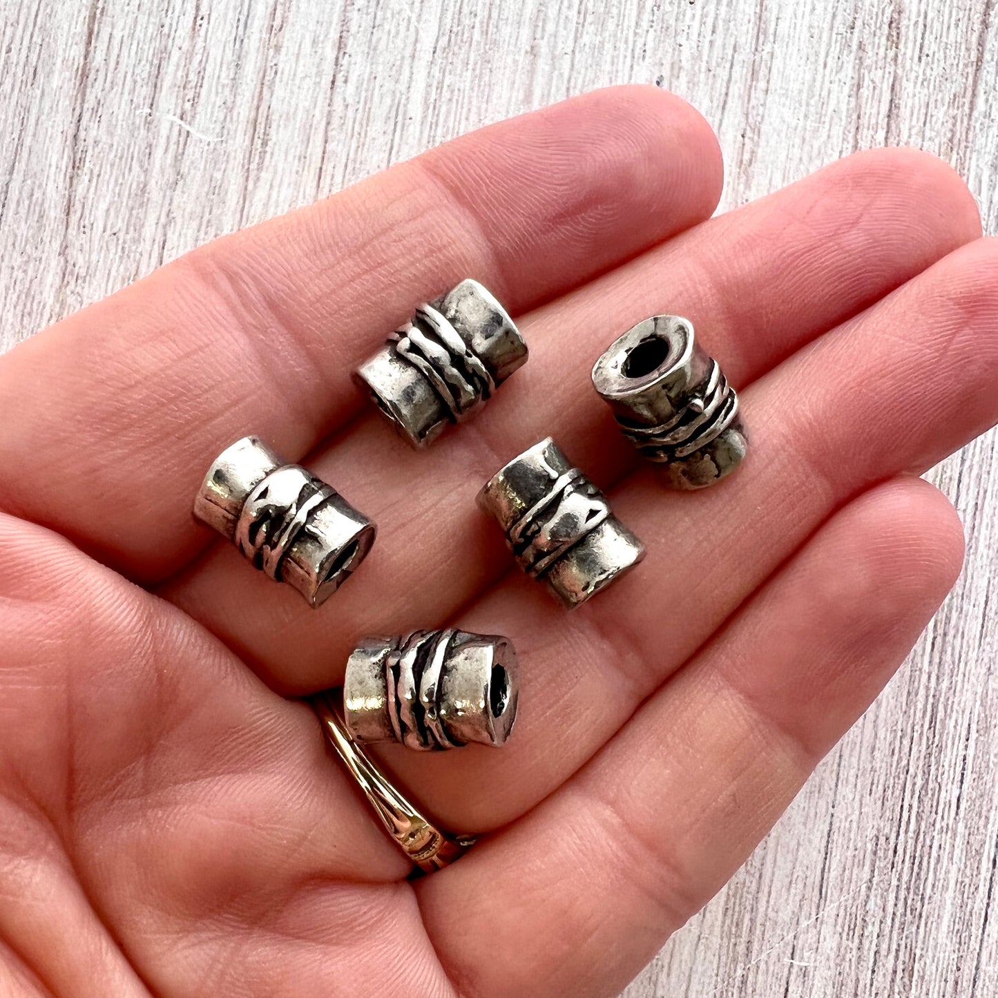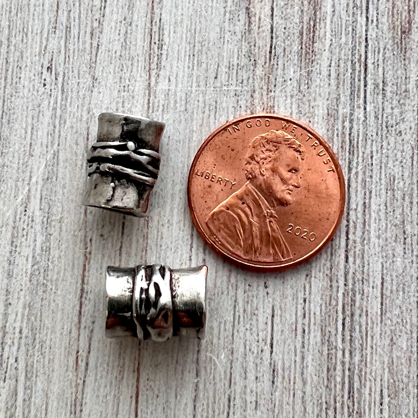 This is a hefty bead with nice texture. This looks excellent on stretch bracelets and works great with leather as well.