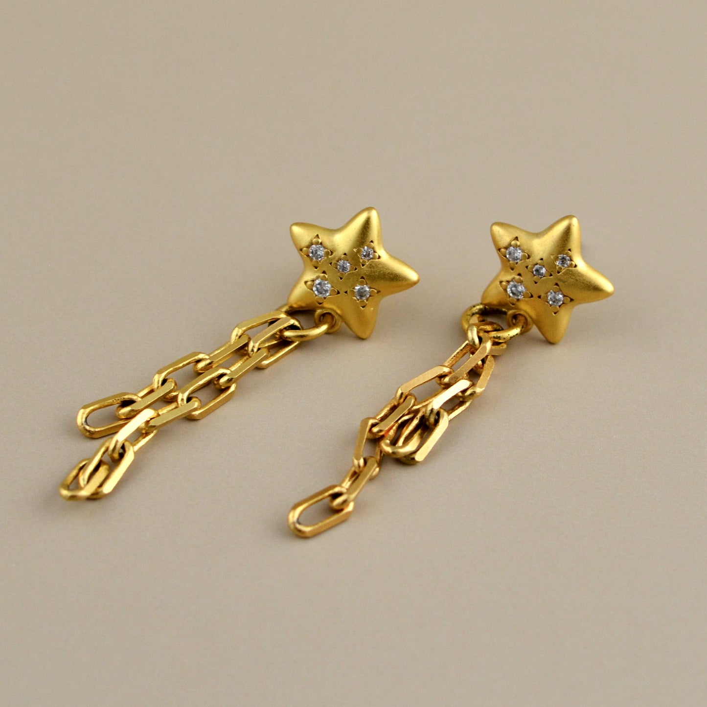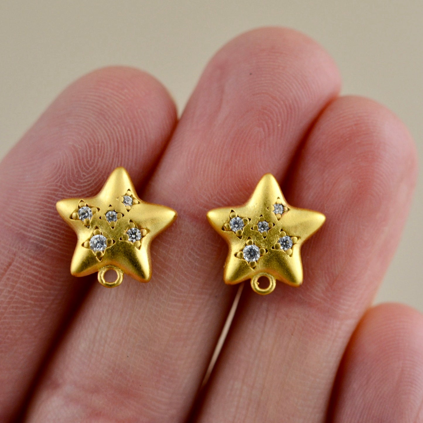 Pair of Star CZ Crystal Studs with Loop, Gold Earring Post, Jewelry Making Artisan Findings, GL-6339