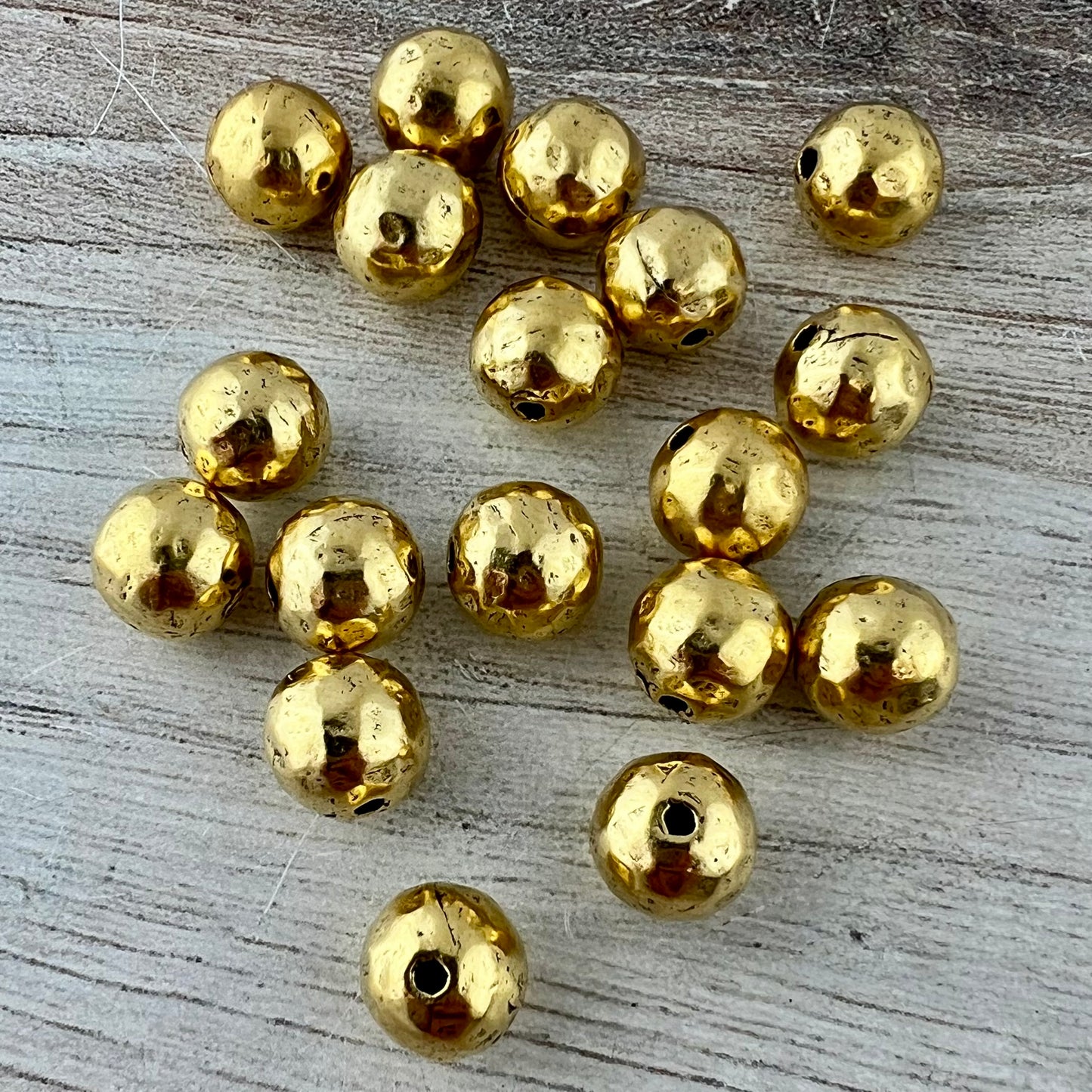 Add 2 Gold Round Hammered Ball Beads, Round Bead, Slider Bead, Jewelry Supplies, Jewelry Finding Making, GL-6328 to the cart