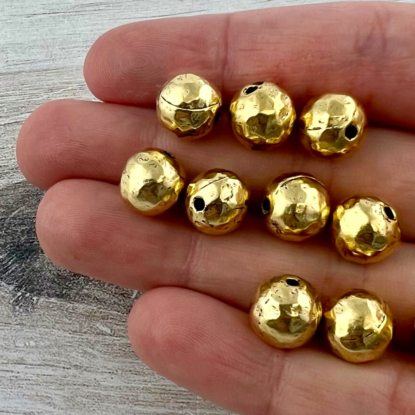 2 Gold Round Hammered Ball Beads, Round Bead, Slider Bead, Jewelry Supplies, Jewelry Finding Making, GL-6328