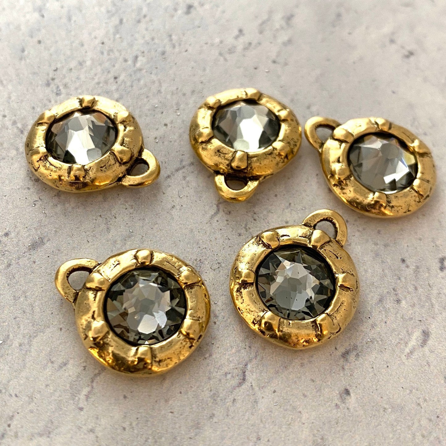 Add Swarovski Black Diamond Charm, Antiqued Gold Rhinestone Pendant, Jewelry Making Artisan Findings, GL-S002 to the cart