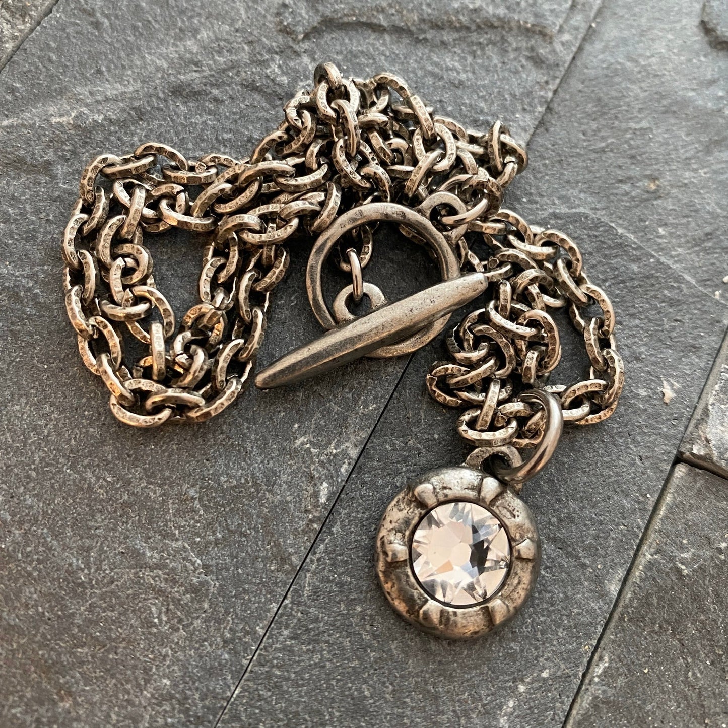 Swarovski Crystal Clear Charm, Antiqued Silver Pendant, Jewelry Making Artisan Findings, Carsons Cove, PW-S001