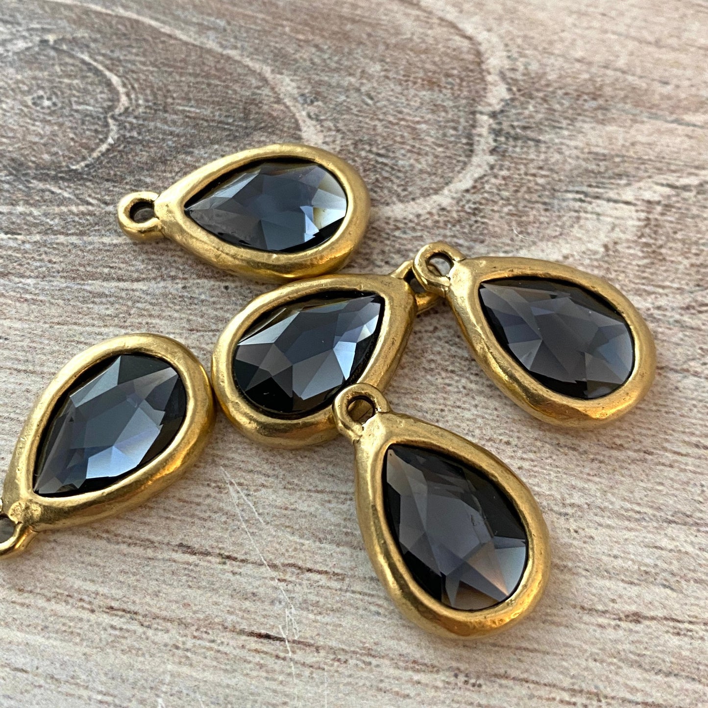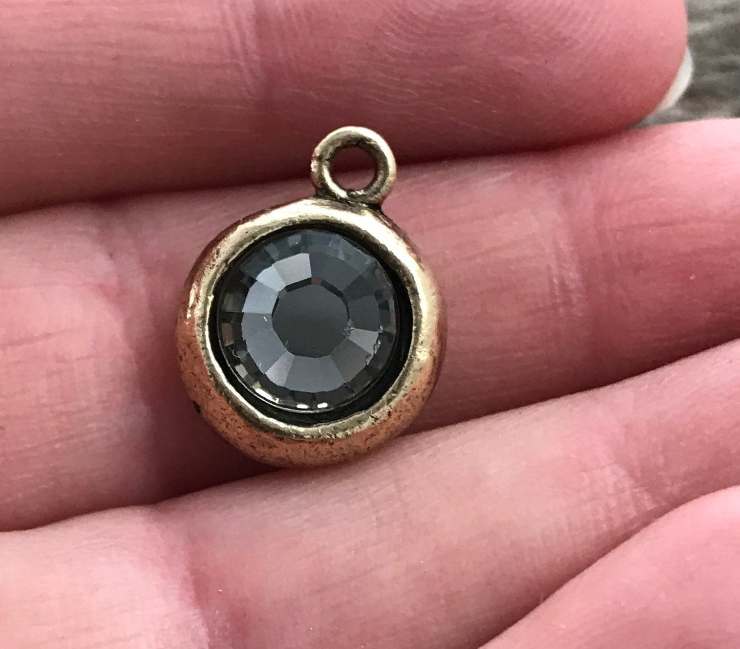 Swarovski Black Diamond Charm, Antiqued Gold Rhinestone Pendant, Jewelry Making Artisan Findings, GL-S002