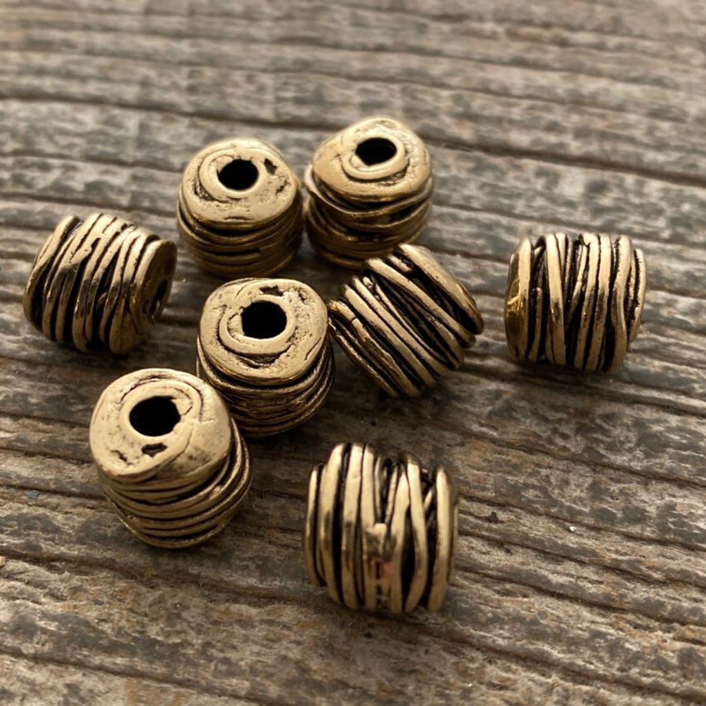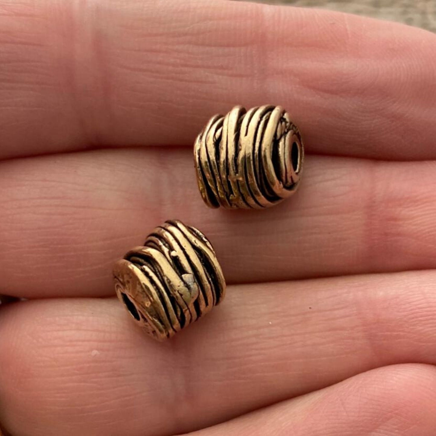 Add 2 Antiqued Gold Artisan Spacer Beads, Wired Tube Bead, Leather Slider Bracelet Bead Finding, Jewelry Supplies, GL-6088 to the cart