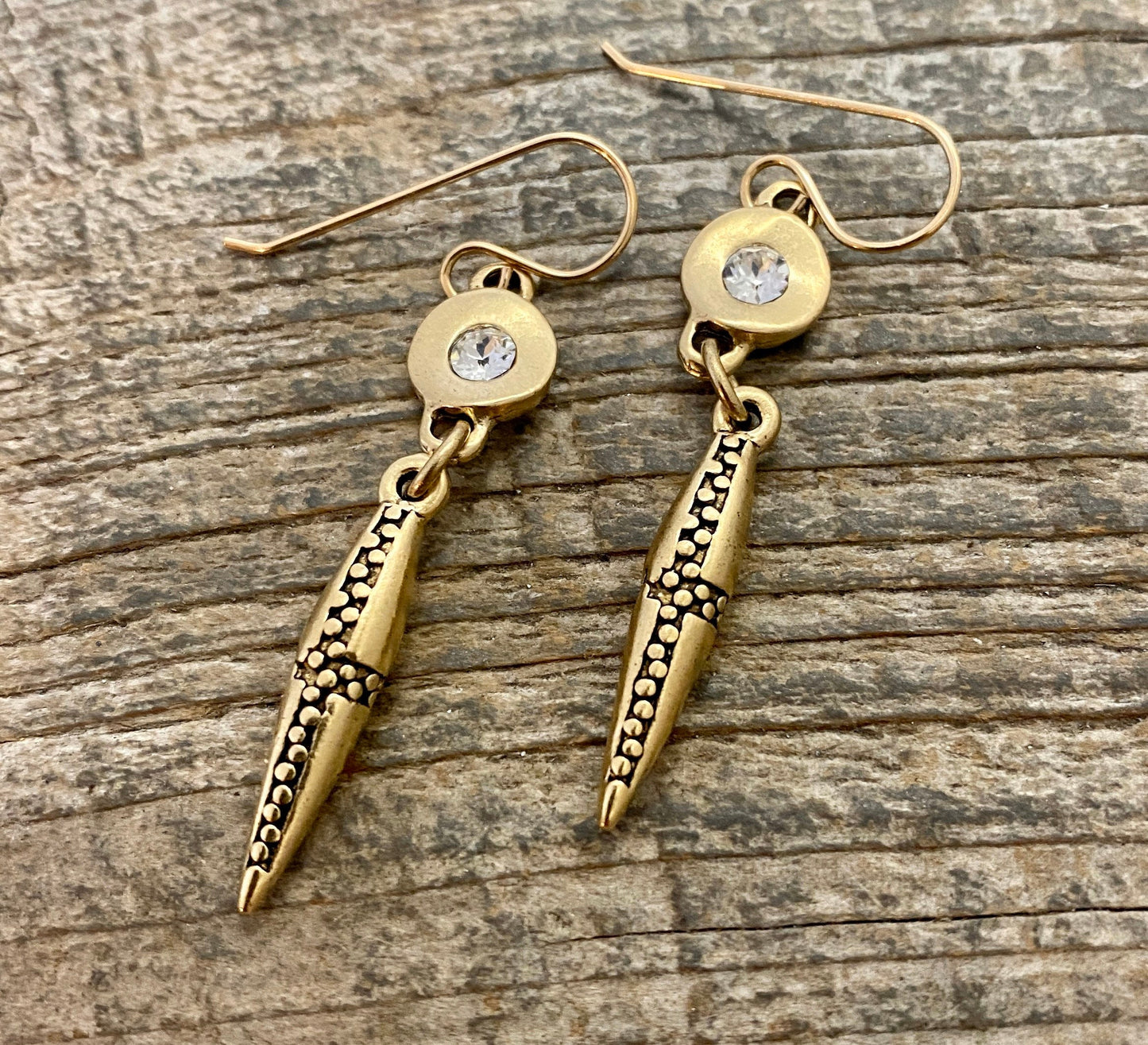 Add Crystal Clear Rhinestone, Small Rustic Brown Antiqued Charm, Jewelry Making Artisan Findings, BR-S031 to the cart