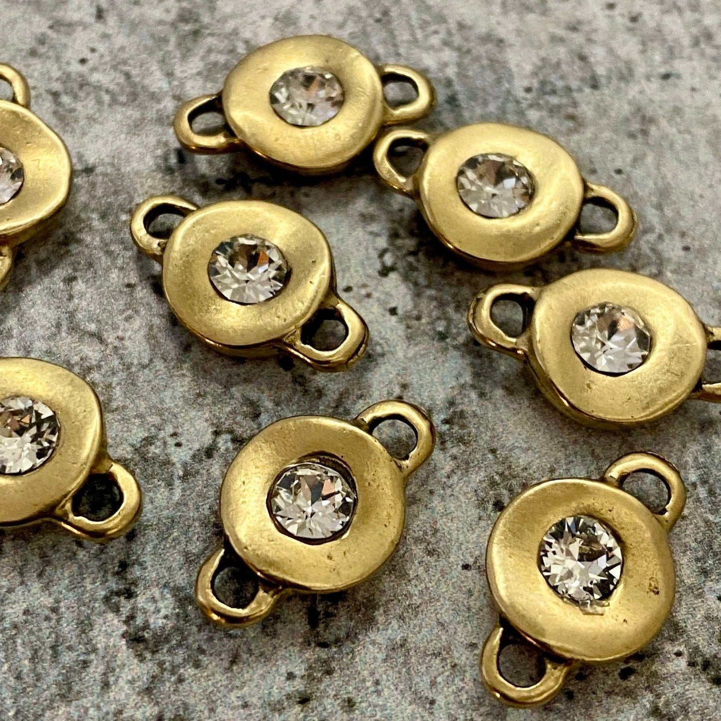 Crystal Clear Rhinestone, Small Rustic Brown Antiqued Charm, Jewelry Making Artisan Findings, BR-S031