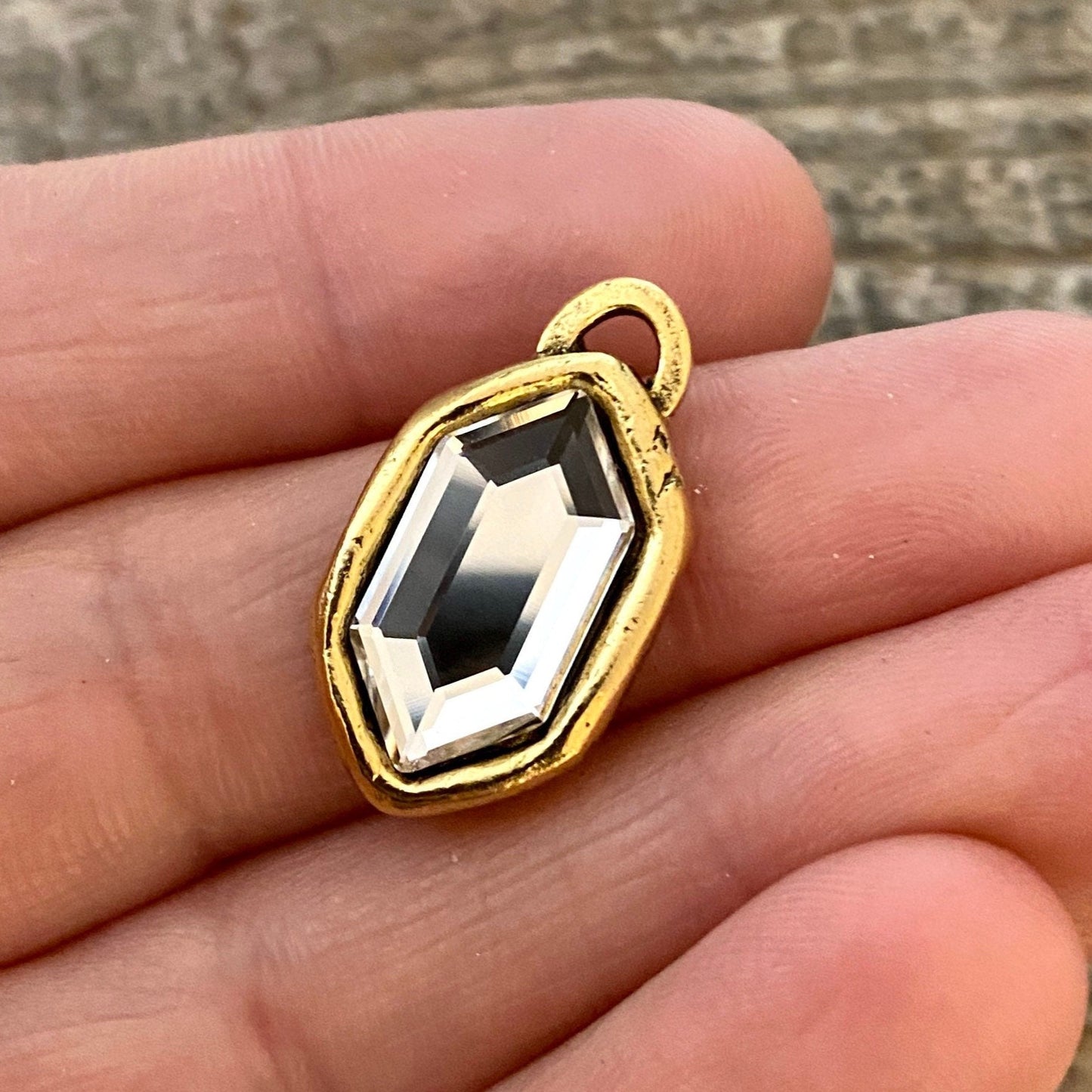Add Swarovski Crystal Clear Hexagon Charm, Gold Rhinestone Pendant, Jewelry Making Artisan Findings, GL-S013 to the cart