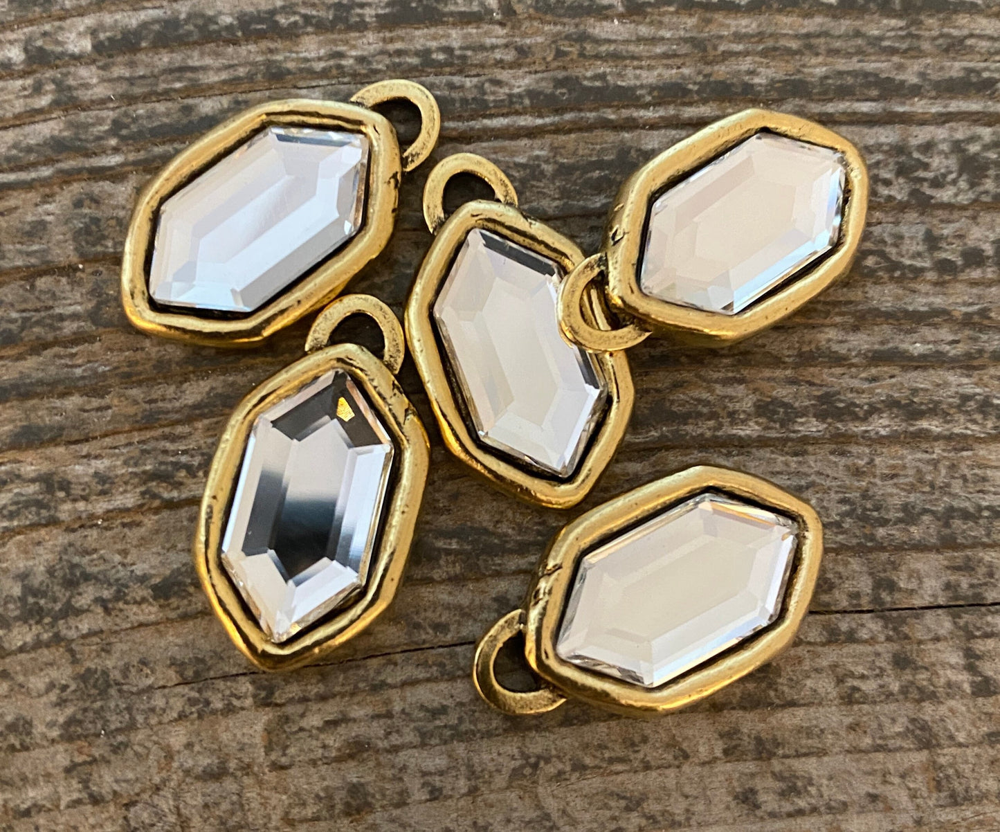Swarovski Crystal Clear Hexagon Charm, Gold Rhinestone Pendant, Jewelry Making Artisan Findings, GL-S013