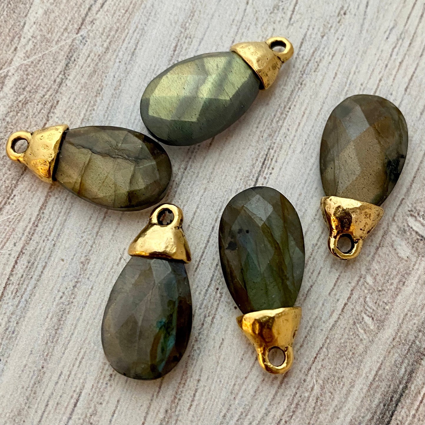 Labradorite Pear Briolette Drop Pendant with Gold Pewter Bead Cap, Jewelry Making Artisan Findings, GL-S021