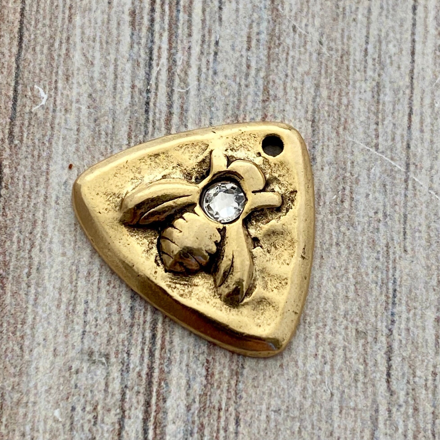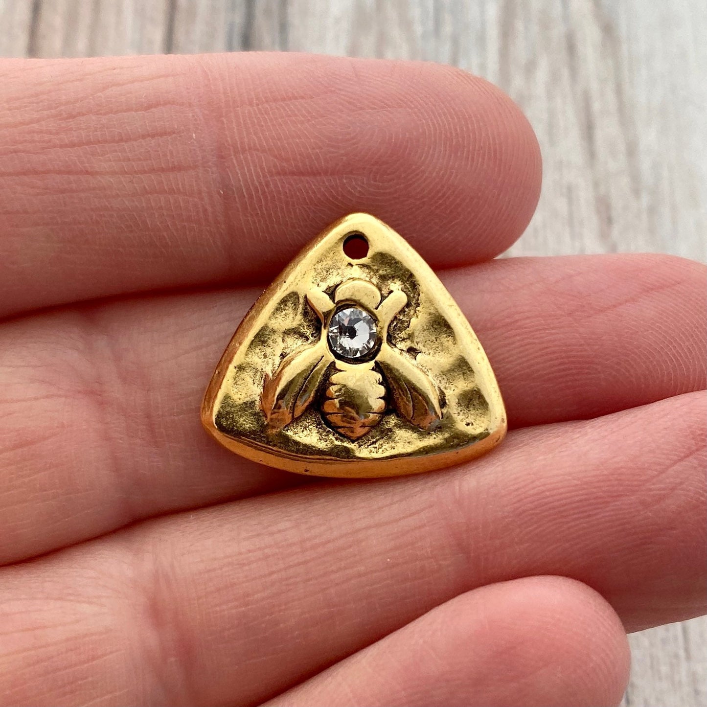 Triangle Bee Charm with Swarovski Crystal Rhinestones, Honeybee Charm with Sparkle, Antiqued Gold Pendant, Jewelry Supplies, GL-6210