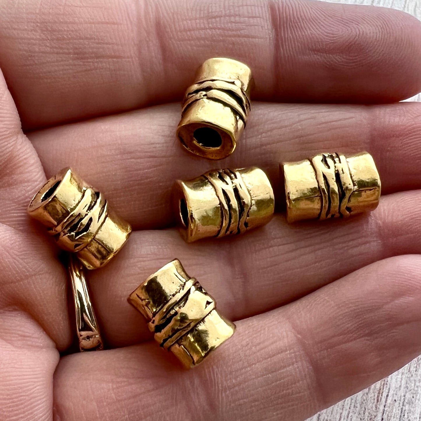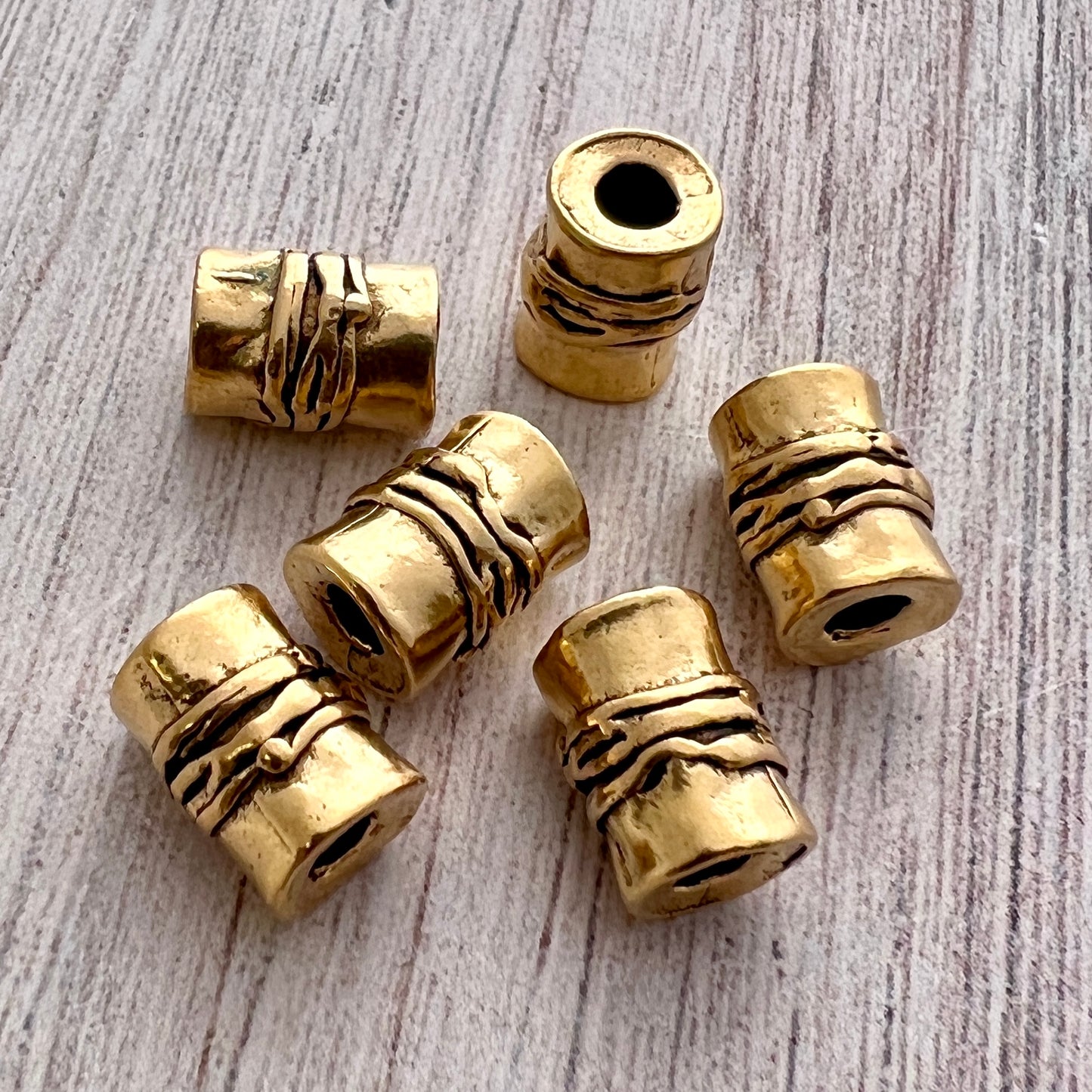 Textured Artisan Tube Bead, Antiqued Gold Finding, Jewelry Components Supplies, GL-6245