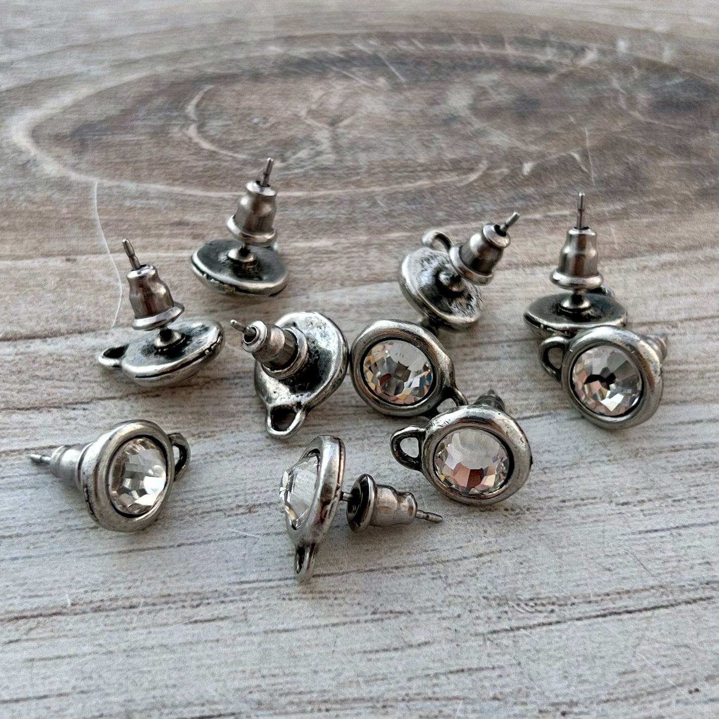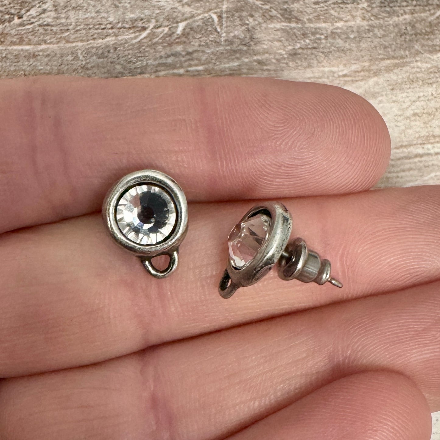 Pair Rhinestone Crystal Studs, Antiqued Silver Earring Post, Jewelry Making Artisan Findings, PW-6289