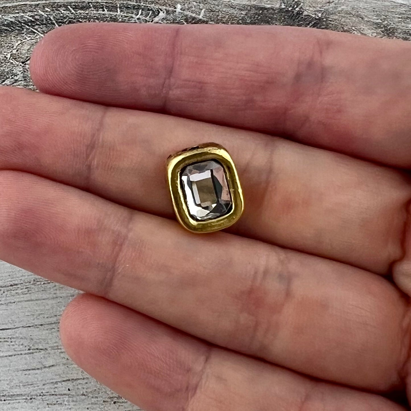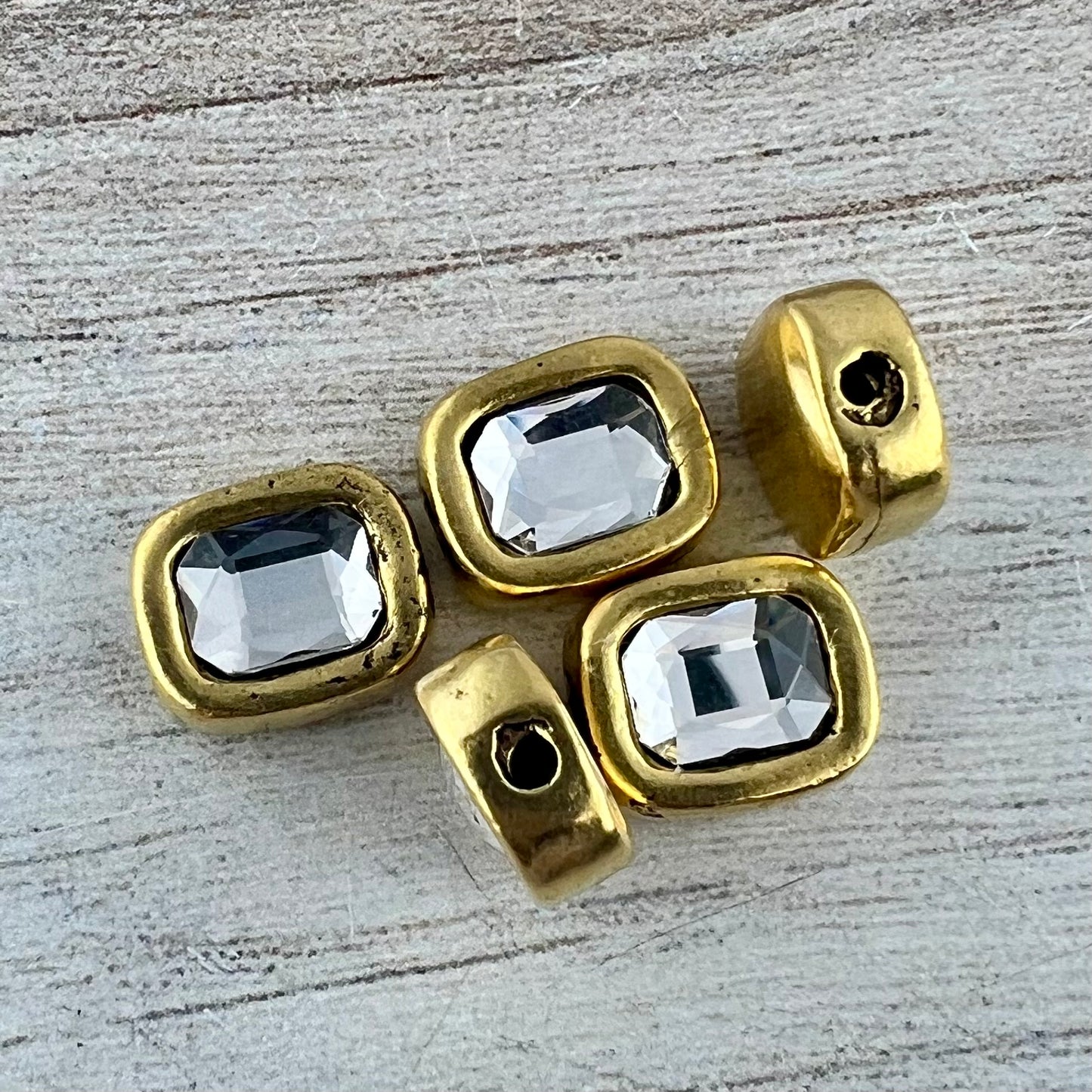 Bead, Crystal Clear Emerald Cut Rhinestone Bead, Small Rectangle Antiqued Gold, Jewelry Making Artisan Findings, GL-S042