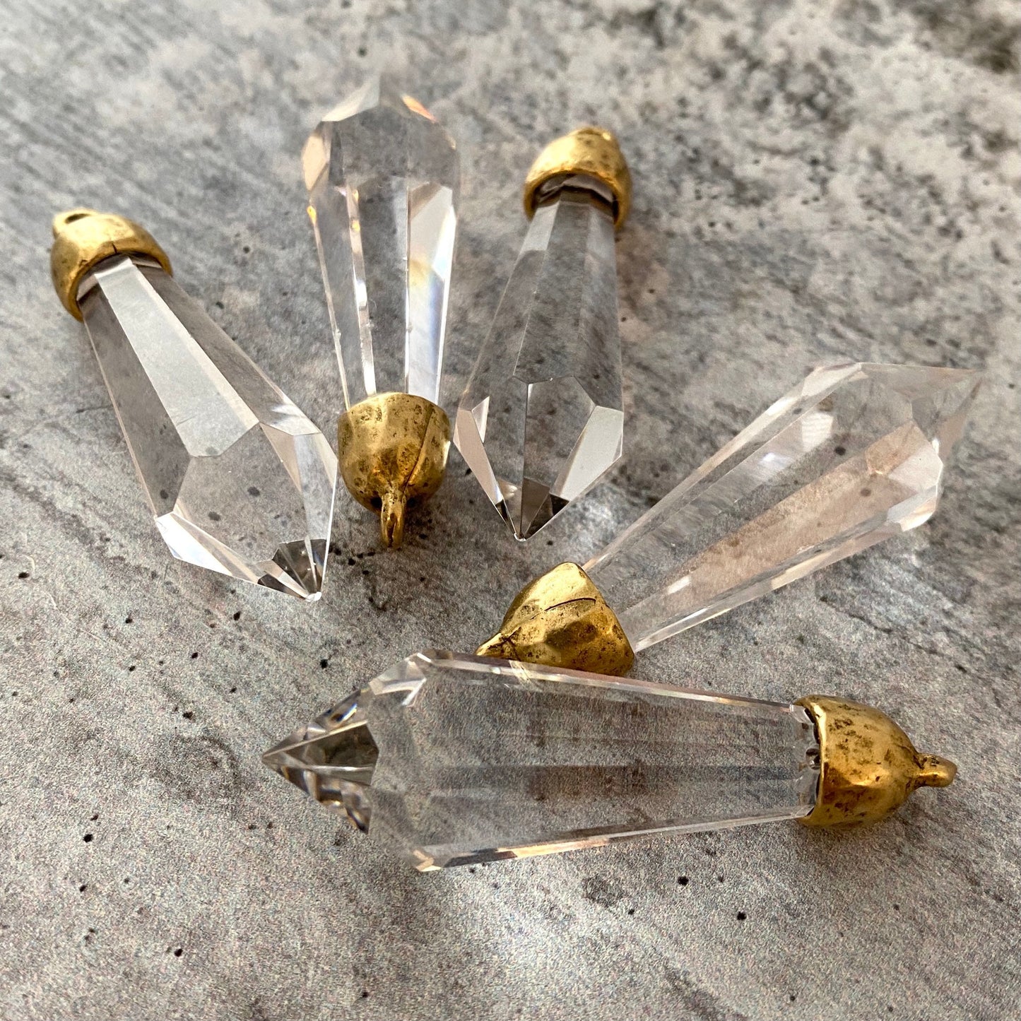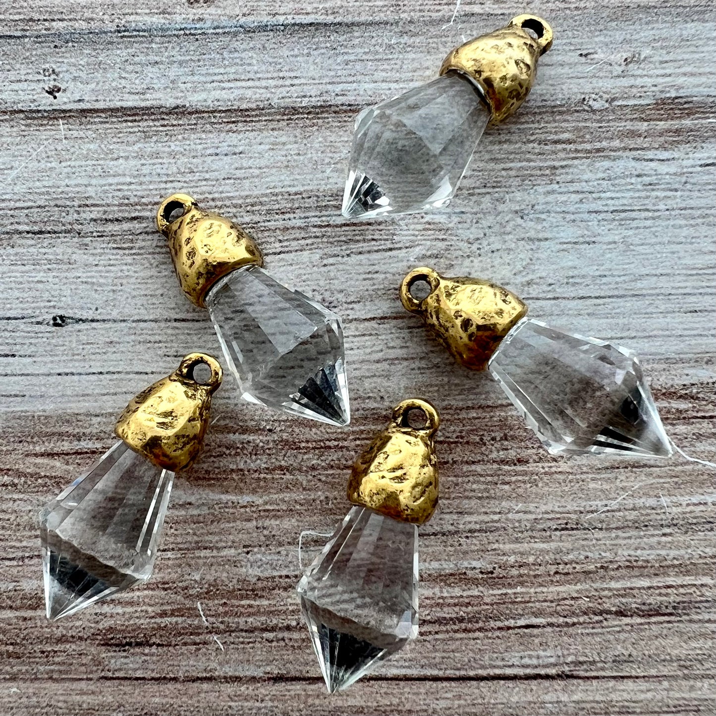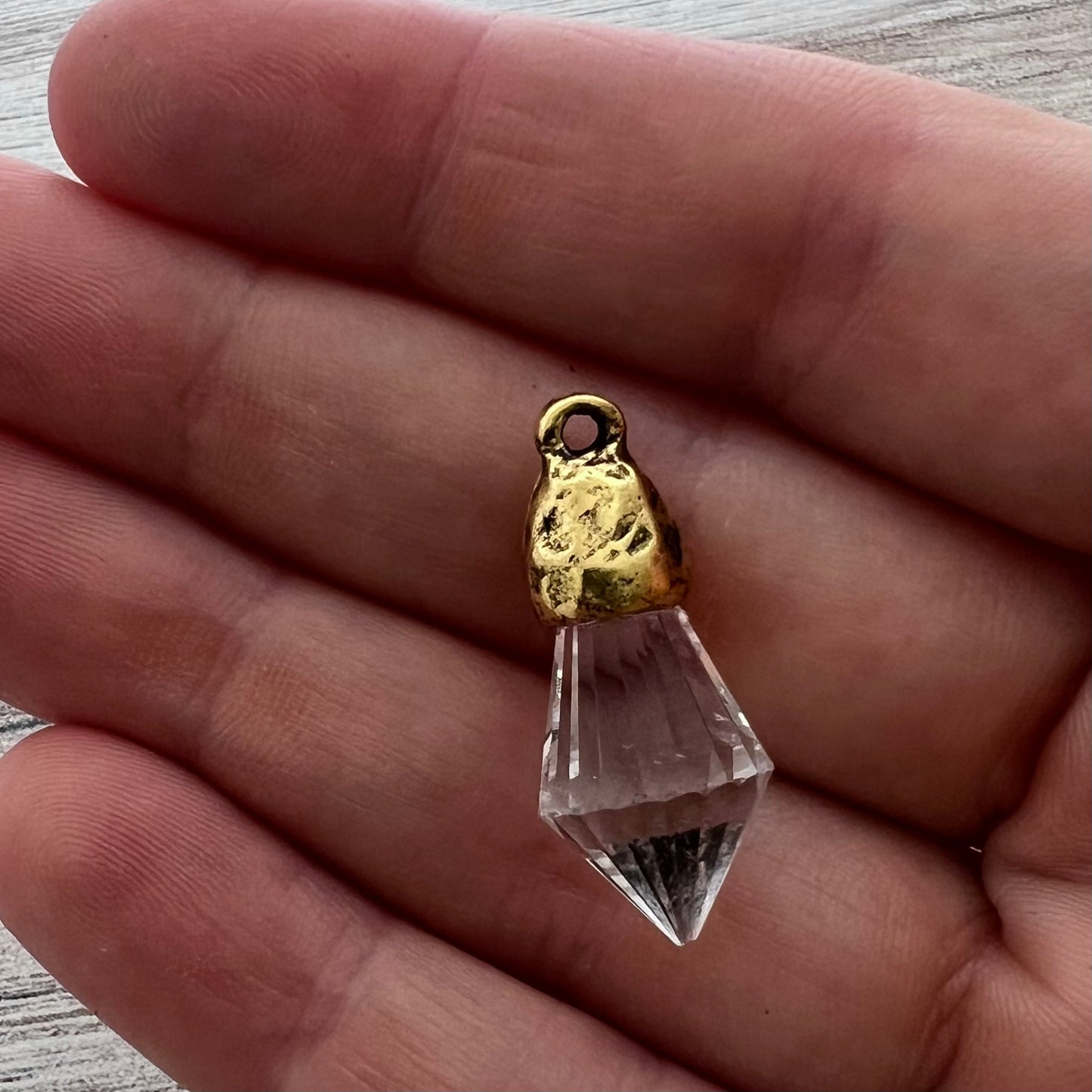 Chandelier Crystal Prism Drop Charm, Clear with Gold Pewter Bead Cap, Jewelry Making Artisan Findings, GL-S038
