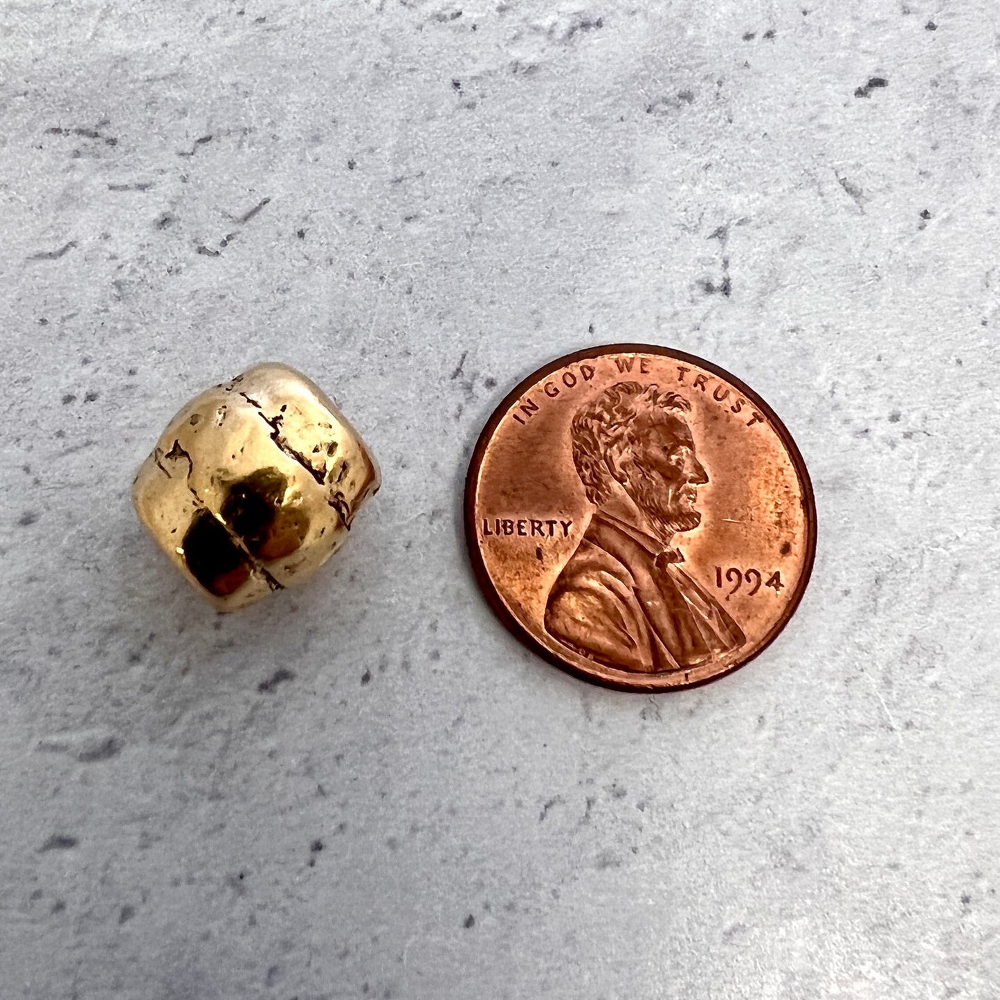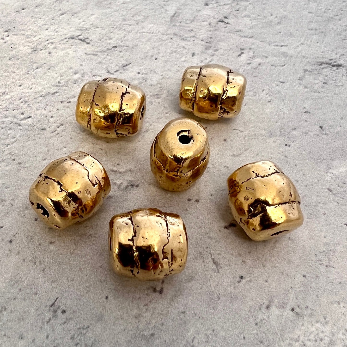Large Striped Hammered Artisan Barrel Slider Bead, Antiqued Gold Finding, Jewelry Components Supplies, GL-6216