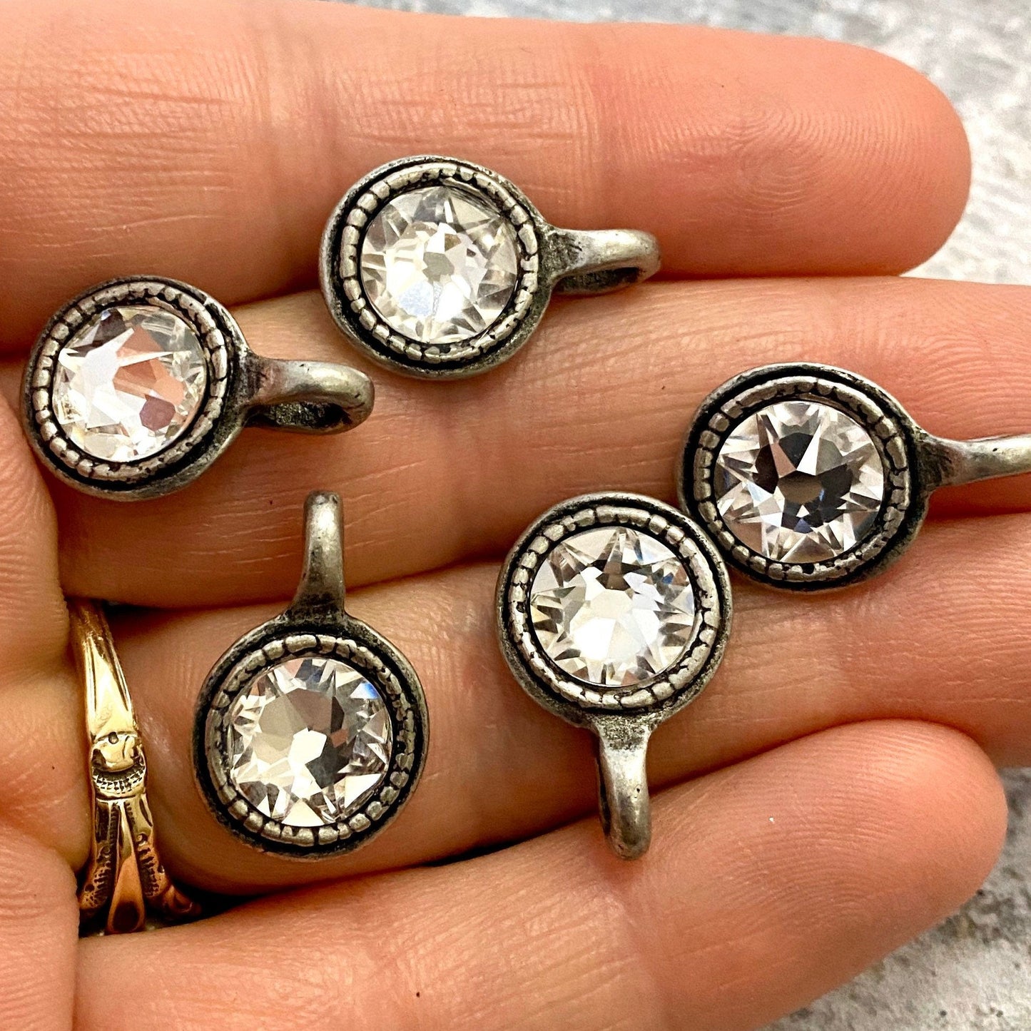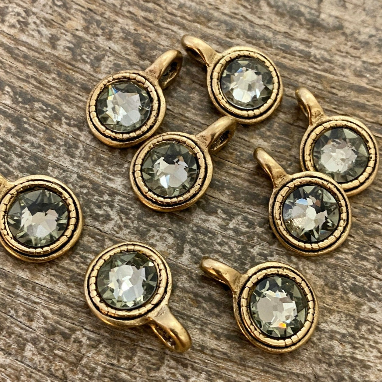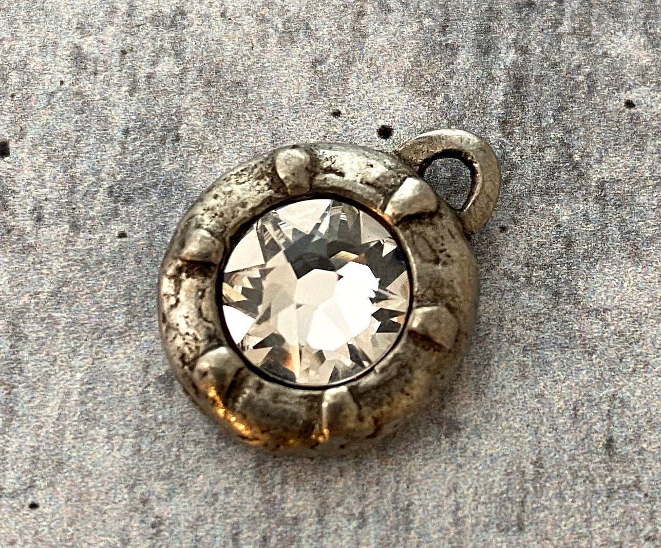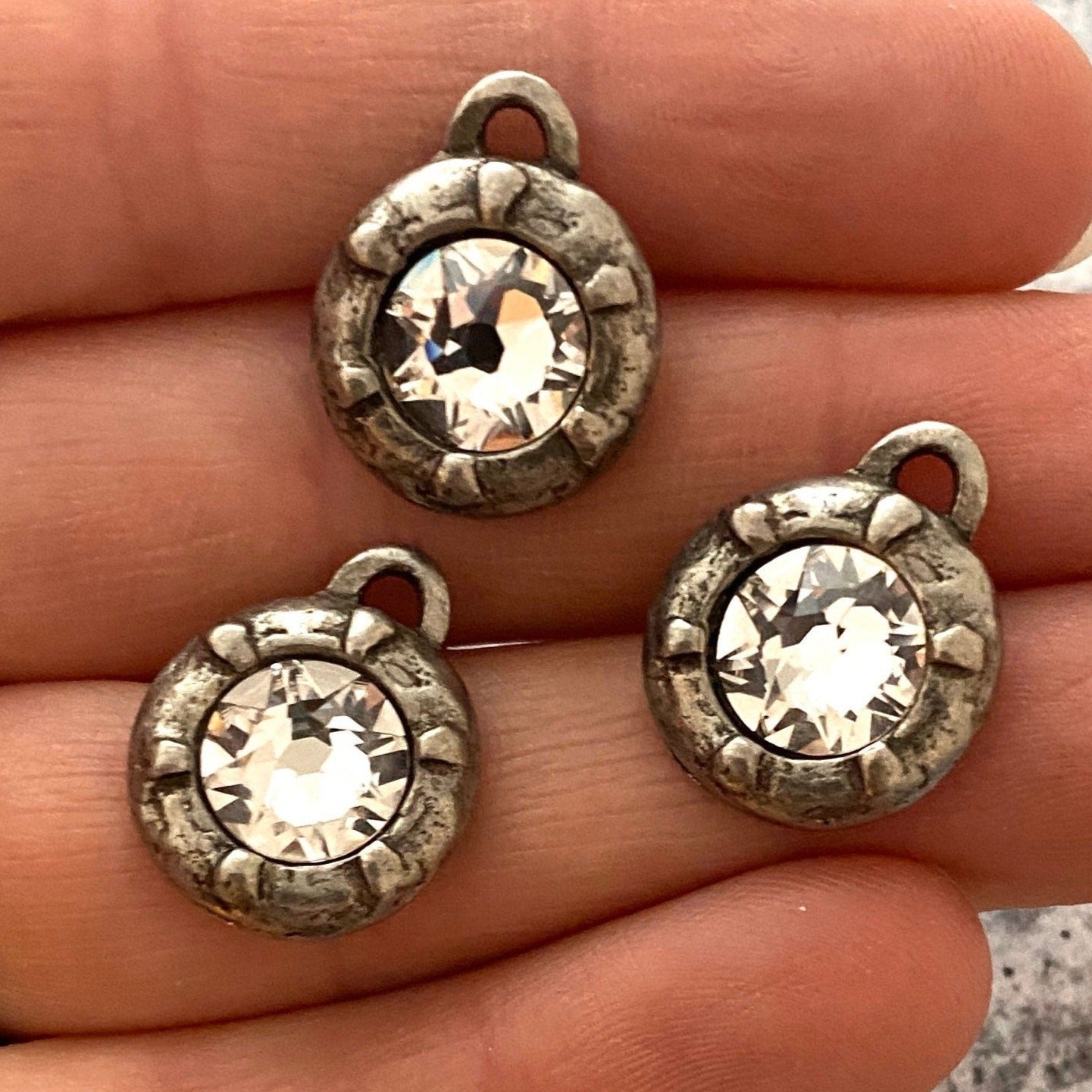 Add Swarovski Crystal Rustic Charm, Antiqued Rhinestone Pendant, Jewelry Making Artisan Findings, BR-S001 to the cart