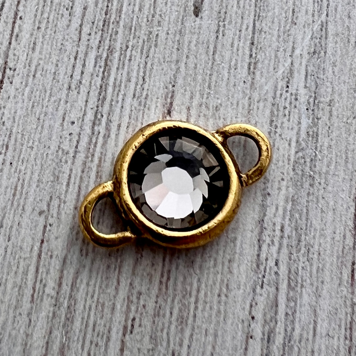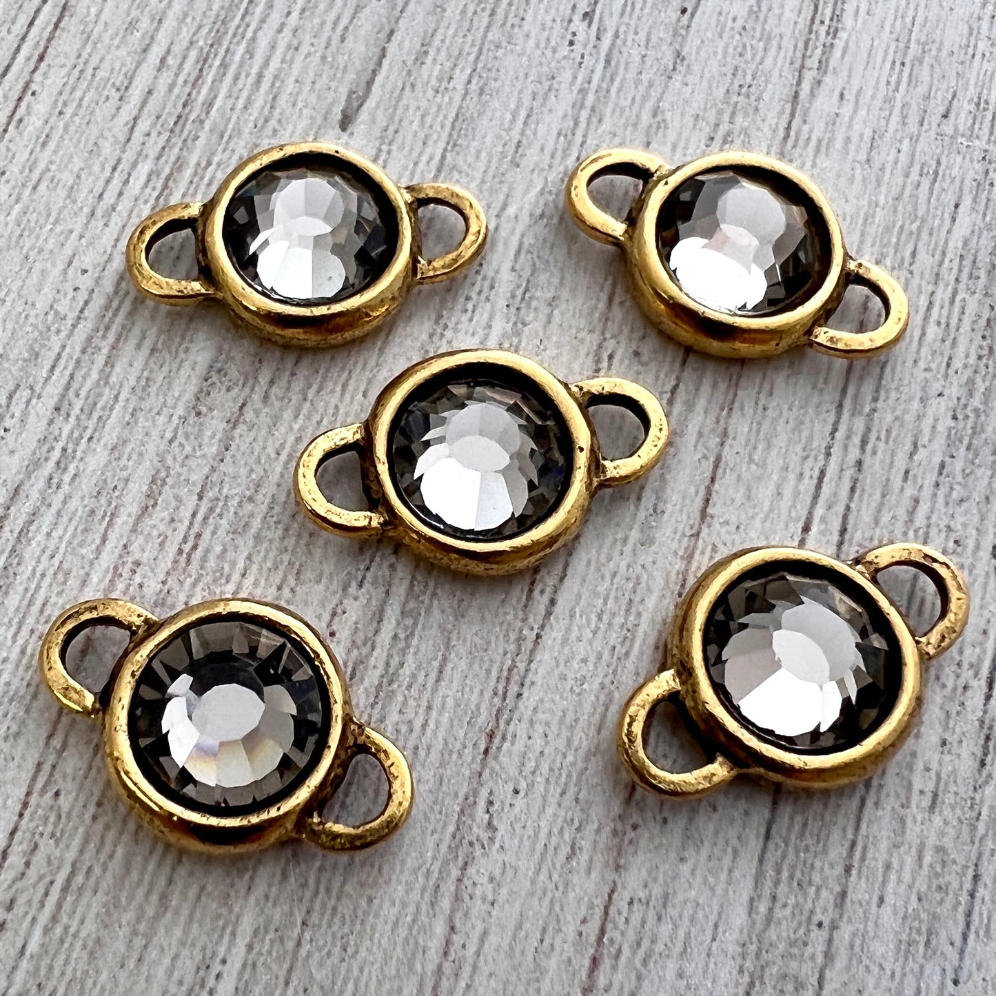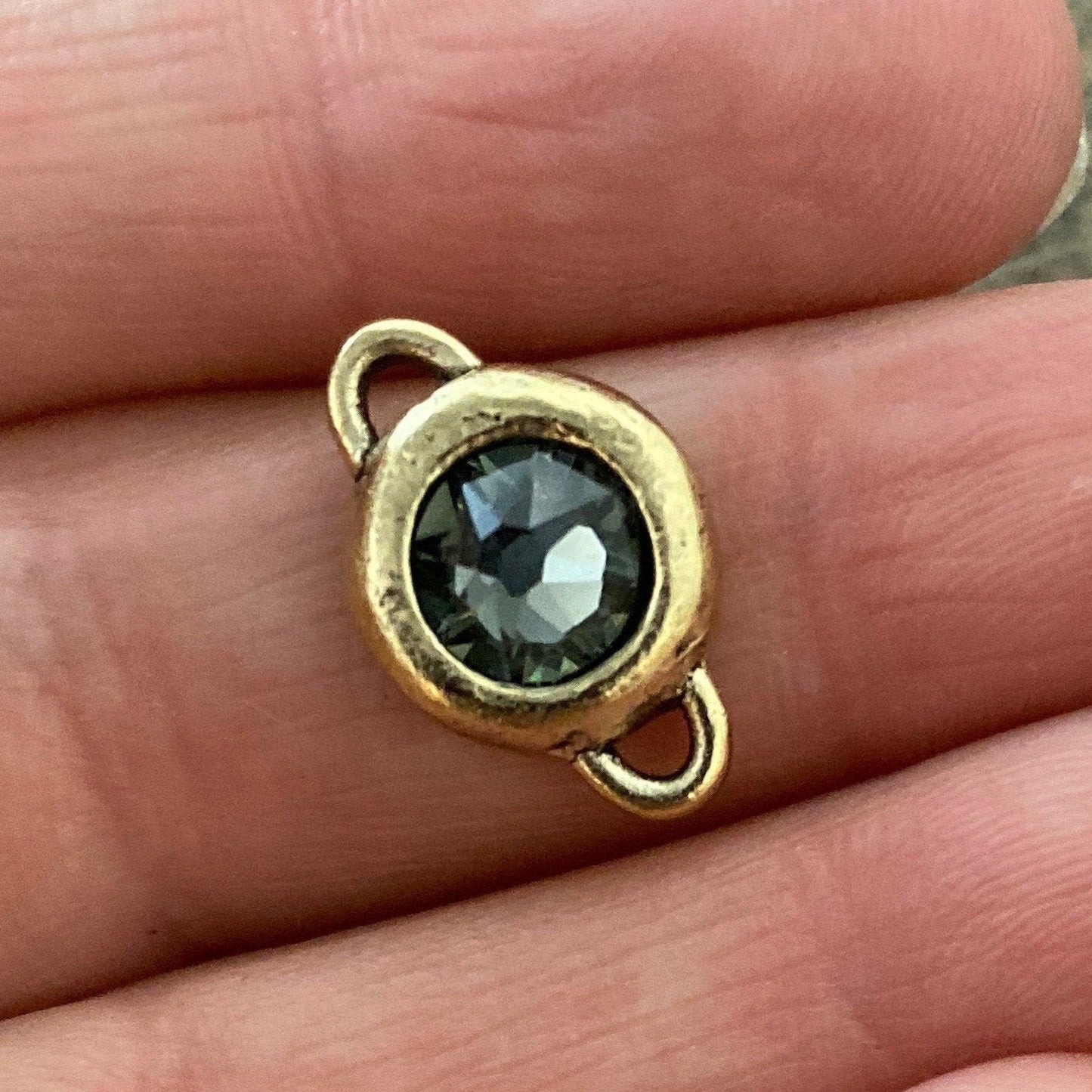 Swarovski Crystal Black Diamond Rhinestone Connector Charm, Antiqued Gold Pendant, Jewelry Making Artisan Findings, GL-S004