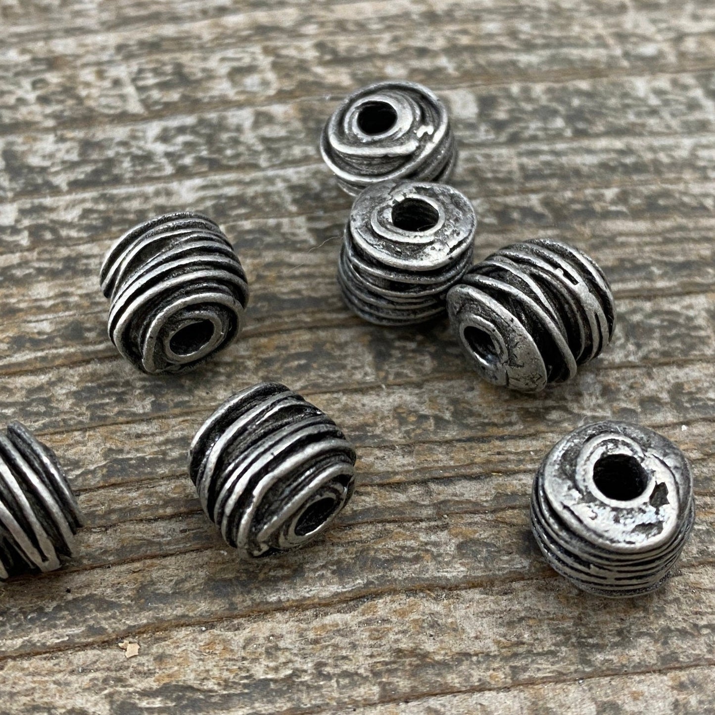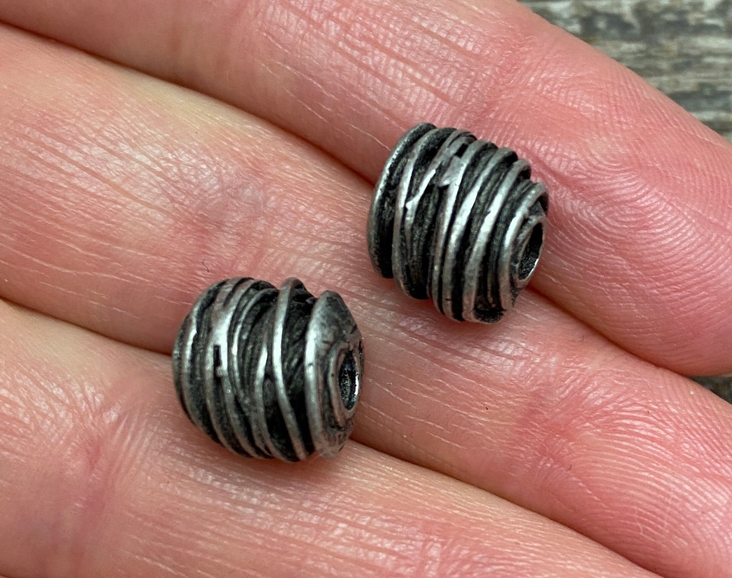 2 Antiqued Silver Artisan Spacer Beads, Wired Tube Bead, Leather PWider Bracelet Bead Finding, Jewelry Supplies, PW-6088