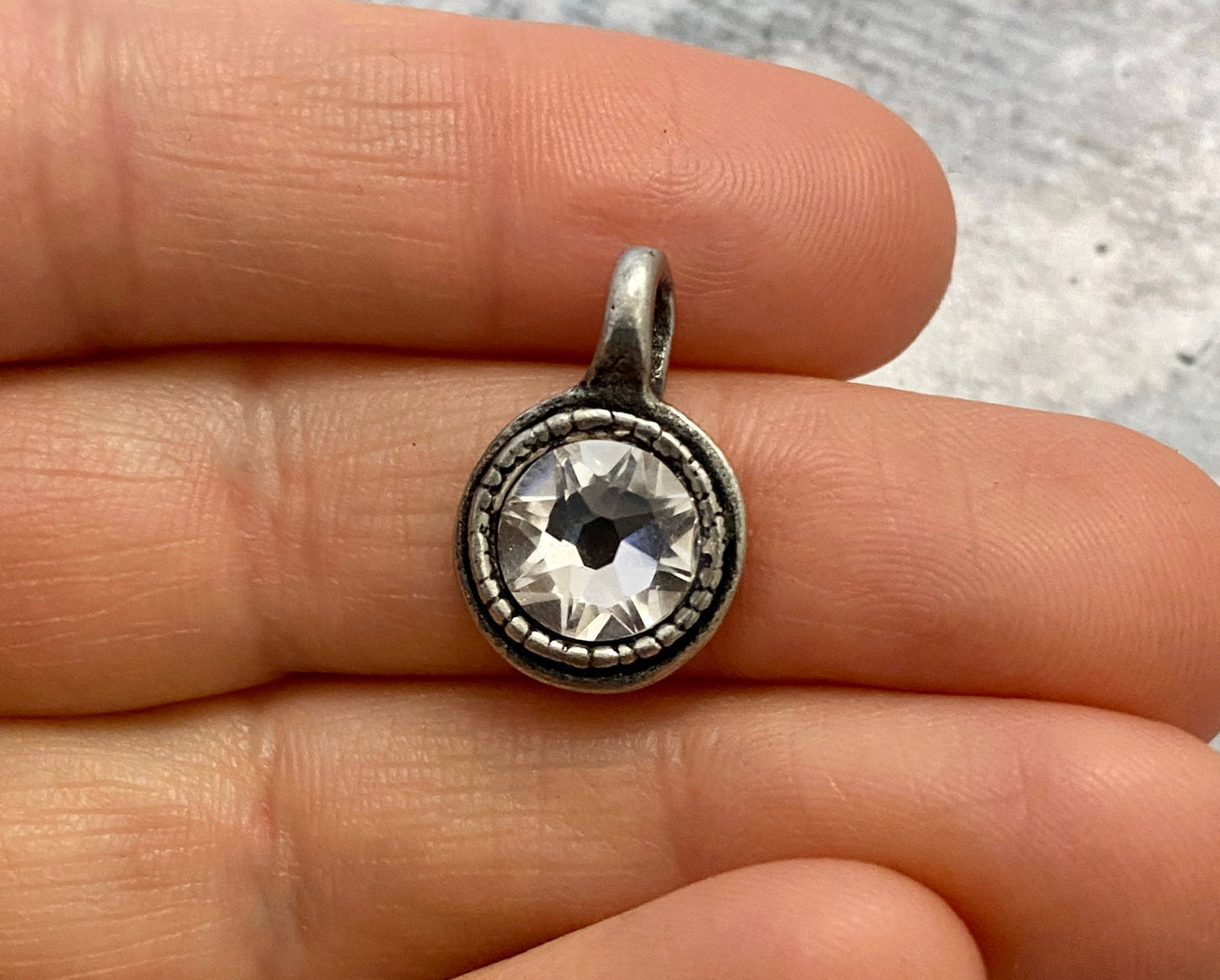 Swarovski Crystal Rustic Charm, Antiqued Rhinestone Pendant, Jewelry Making Artisan Findings, BR-S001