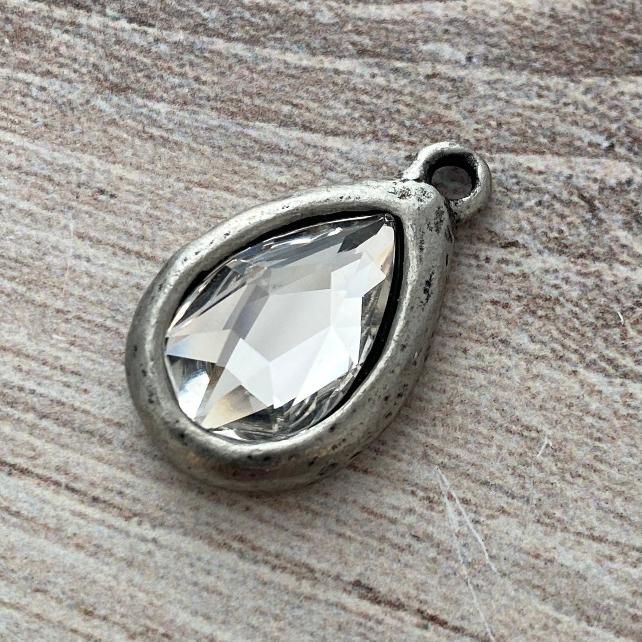Add Large Swarovski Crystal Clear Charm, Antiqued Silver Pendant, Jewelry Making Artisan Findings, PW-S007 to the cart