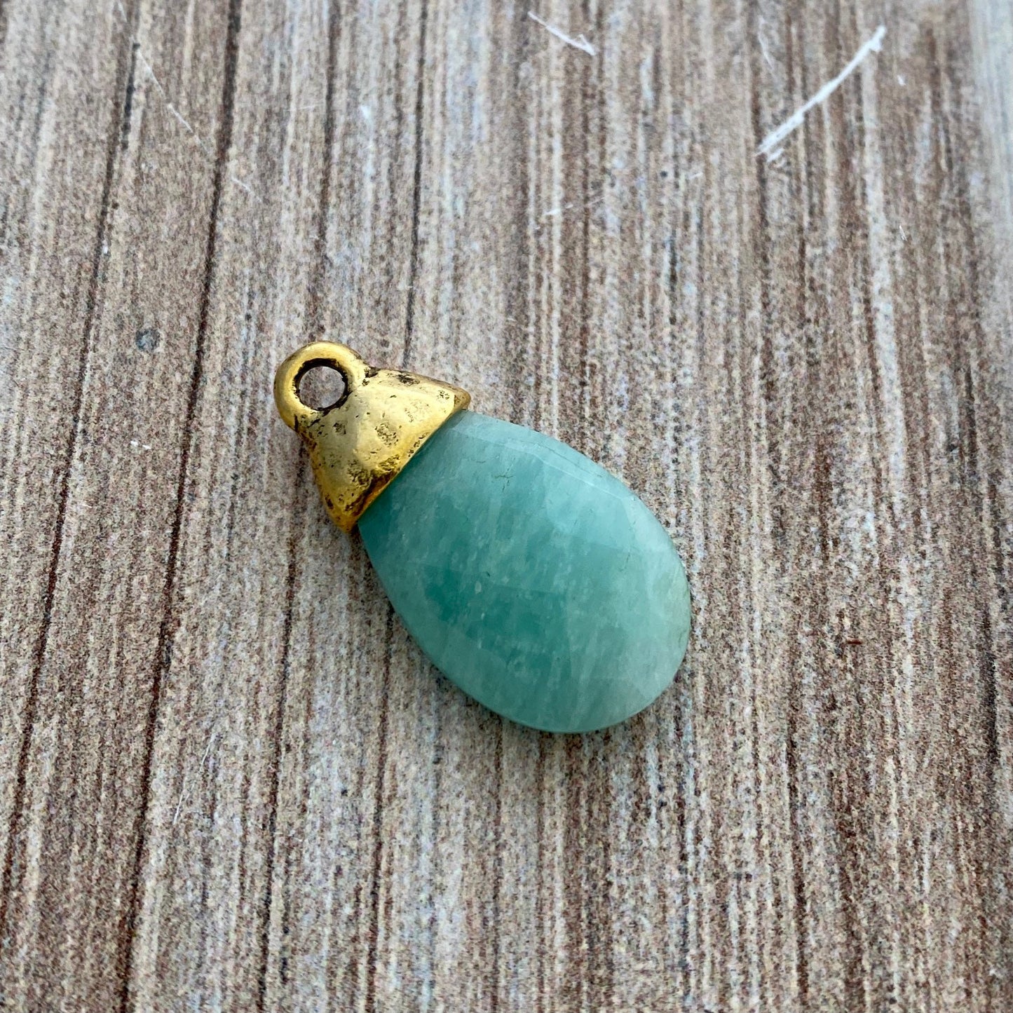 Amazonite Pear Briolette Drop Pendant with Gold Pewter Bead Cap, Jewelry Making Artisan Findings, GL-S023