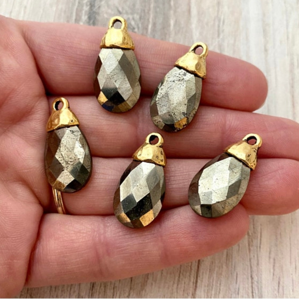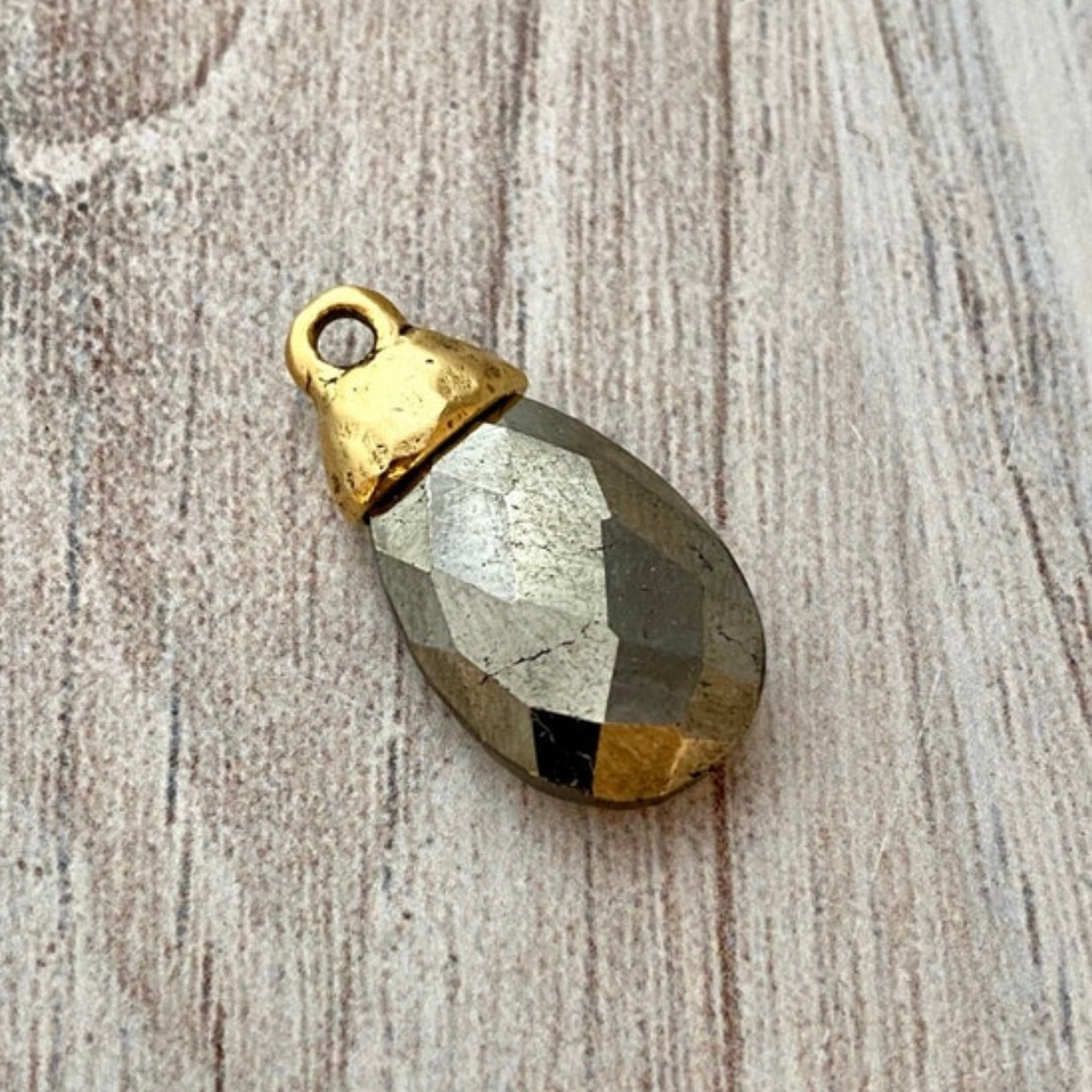 Pyrite Pear Faceted Briolette Drop Pendant with Gold Pewter Bead Cap, Jewelry Making Artisan Findings, GL-S026