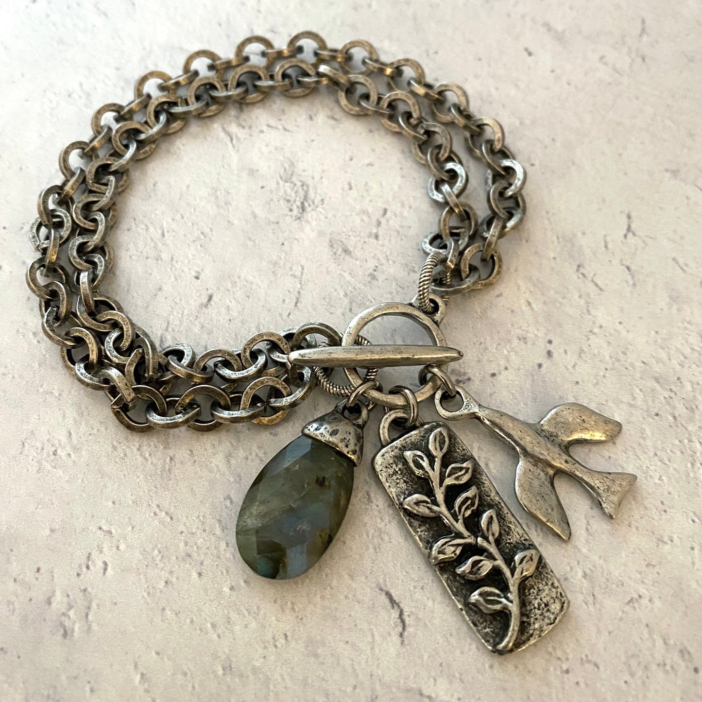 Add Extra Large Swarovski Crystal Clear Charm, Rustic Brown Pendant, Jewelry Making Artisan Findings, BR-S027 to the cart