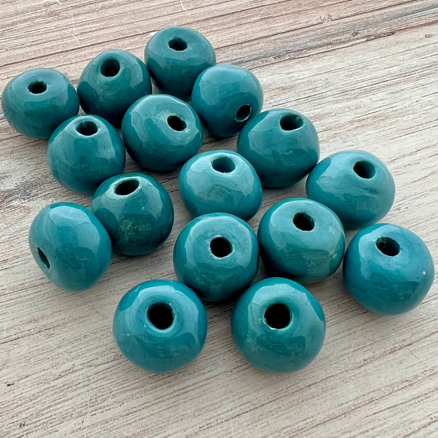 Add 4 Large Blue Teal Ceramic Beads, Glazed Large Bead, Jewelry Finding Making Supplies, BD-0040 to the cart