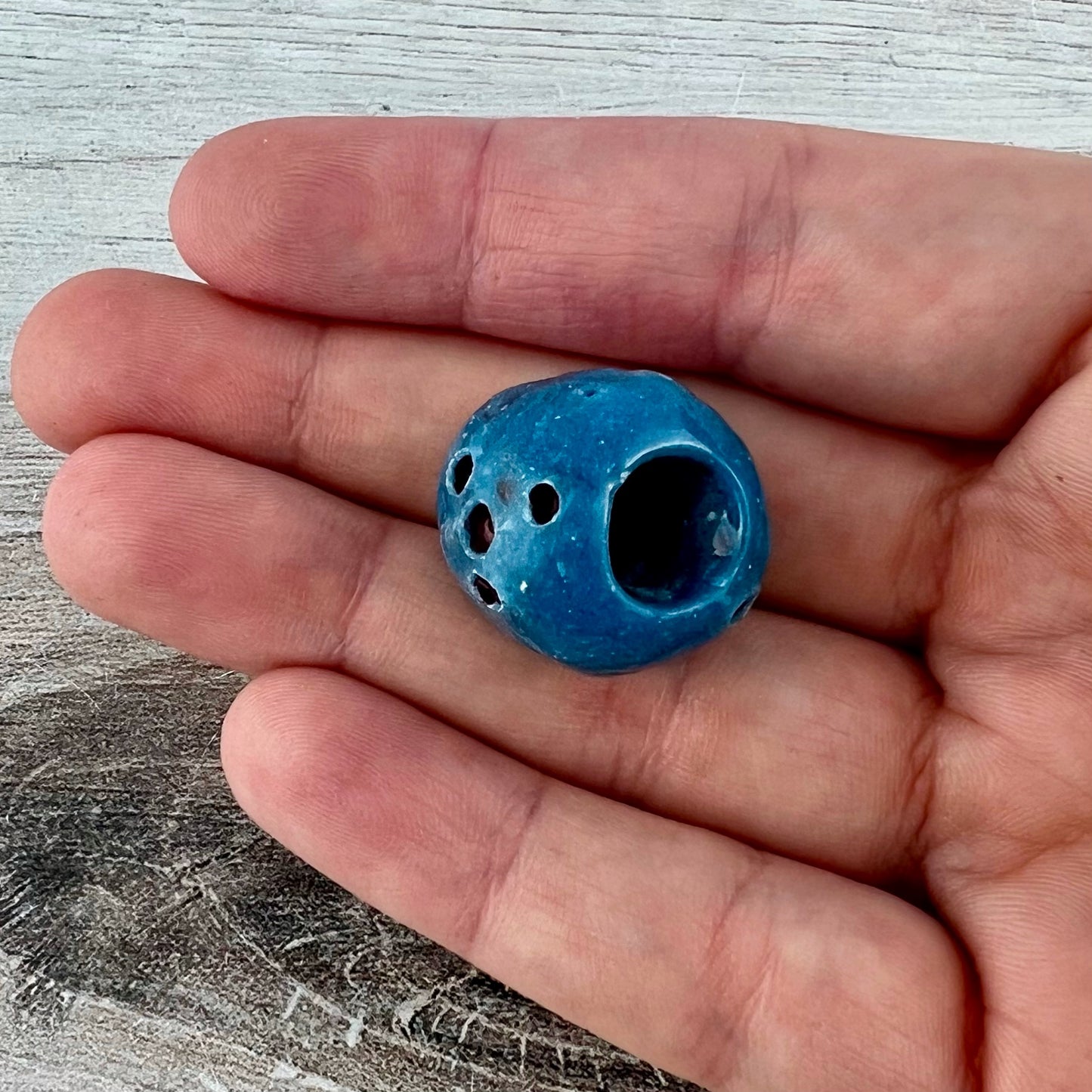 4 Large Teal Blue Textured Ceramic Beads, Ceramic Large Bead, Jewelry Finding Making Supplies, BD-0044